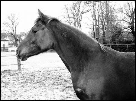 | Dire merci | Ben en fait elle est bai brune. Enfin je ne sais pas trop. Noir pangaré sur les papiers. Noire très noire en plein hiver. Presque alezane brûlée en été comme sur la photo au dessus avec le soleil couchant. Bai brune en mi saison. Bref caméléon ! ![]() Bon par contre la deuxième, achetée noir de jais et ... bam, grise ! Pfff ![]() |