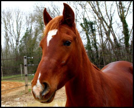 | Dire merci | j'entre également dans le club, avec Vicky j'ai pas grand chose à raconter, vu que jsuis à plusieurs centaines de km de lui et que jle revois pas avant juillet ![]() et quand c'est pas mon chéri qui prend les photos (cad très rarement, vu qu'il est également à 1000km de Vicky), ben c'est ma soeur, avec son téléphone.... et ça lui rend pas spécialement hommage ![]() ![]() alors j'avais bien pendant qq semaines des photos de mon poulinou à mettre sous la dent, mais vu qu'avec l'intégration dans le troupeau des Bouchetis + l'hiver + la croissance, il est loin d'être canon, et qu'en plus on fait pas grand chose, ben...... voila quoi là où j'espère que j'aurai pleins de belles photos à vous montrer, c'est quand je réunirai les deux |