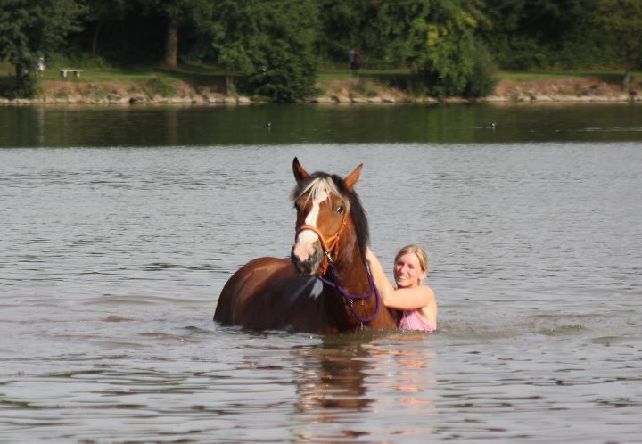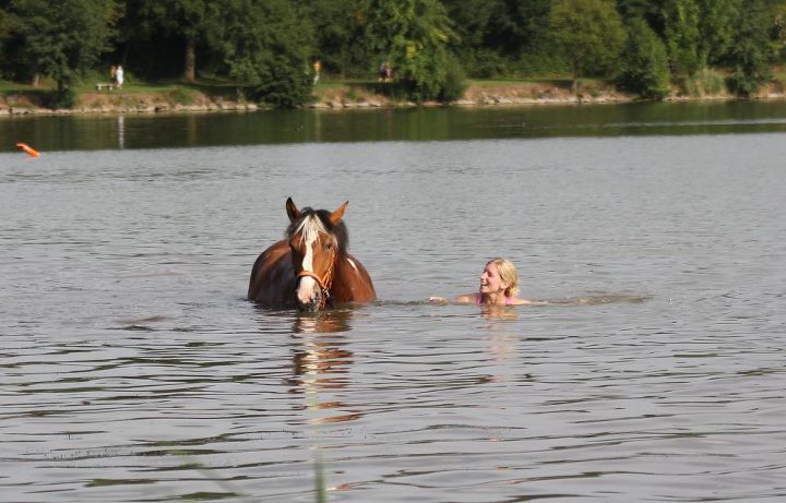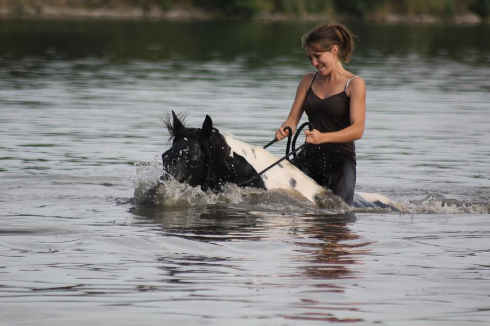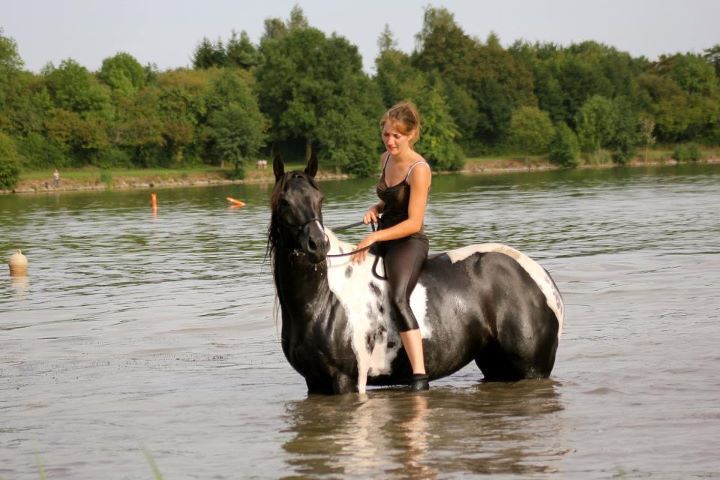 | Dire merci | ouiiiiii! dans un lac, il faut nager le plus loin possible, plus tu passes de bouées et plus tu as de points j'y vais principalement pour ça comme pas mal de monde je crois! c'est vraiment l'occasion de nager avec son cheval dans le coin! Sinon hier, balade de 2h30 en cordelette, en foret, plaine avec ma doudoune, elle a été exemplauire et a tout fait! sauter un fossé, un tronc d'arbre, croiser les quads sans encombre au milieu de la foret, un chien qui nous a courru derrière... On a trotté, galopé, fait un mini cross au trot dans les bois sur un mini chemin plein de virages, du bonheur à 'létat pur! j'en reviens encore pas! j'ai fait une petite vidéo de ces 10 derniers jours intenses en émotions |