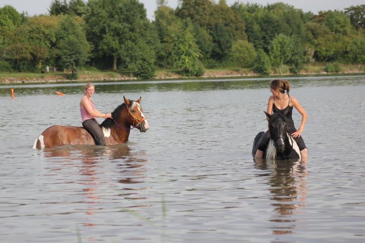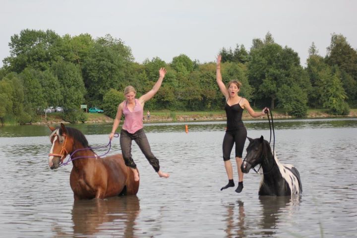 | Dire merci | Non seulement c'était chouette, mais vraiment inoubliable pour ma part Savane avait du mal à y rester, et ils ont beaucoup plus de force dans l'eau plors parfois c'était un peu musclé avec elle! Ce que j'ai préféré c'était de me mettre à coté d'elle et de m'accrocher à son encolure, et de ma laisser tracter. Moi qui suis narreuse, j'avais de la vase jusqu'aux chevilles Aujourd'hui mécga courbatures, c'est une surprise car hier j'avais seulement mal au pied. Là migraine, , courbatures du haut de la nuque jusqu'au pied. |