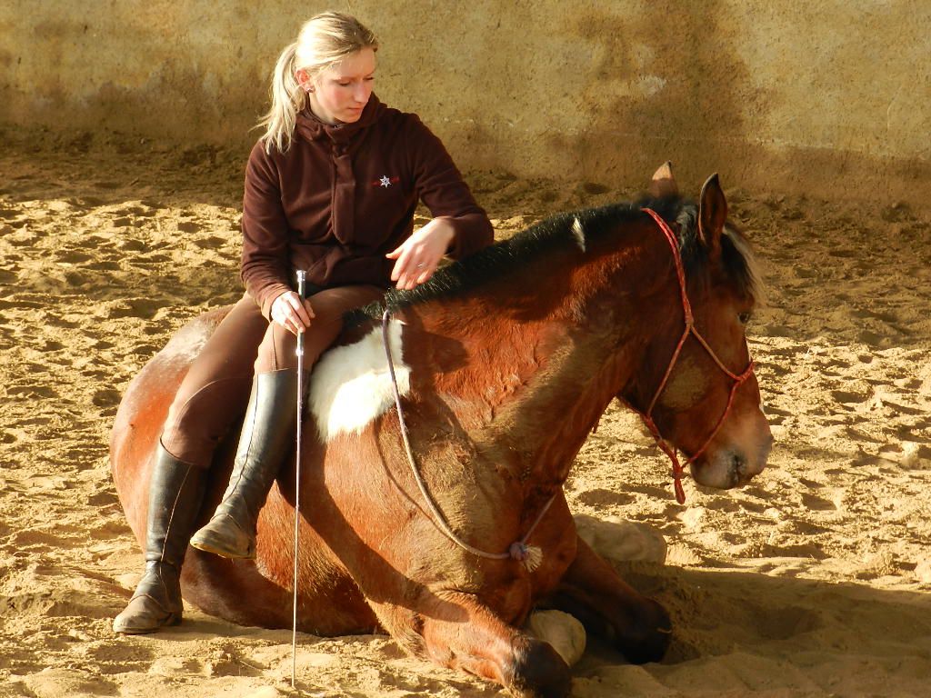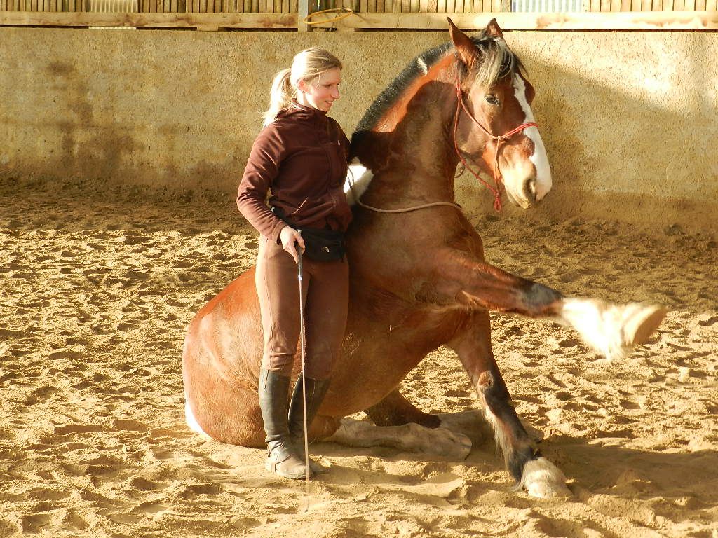| Dire merci | le assis c'est pas évident pour nos grosses doudounes car elles perdent l'équilibre sous leur poids savane aussi a tendance à glisser, faut vraiment que je choisisse mon terrain c'est soit en manège ou sur de la terre dure, mais le assis sur de l'herbe ça glisse, dans la terre mouillée ça glisse quand elle aura compris le principe faudra que tu l'aides à porter son poids, se mettre du coté où elle "tombe" et la maintenir (ce sont les conseils qu'Emeline m'a donnés et ça a très bien fonctionné) les cercles en liberté, y a pas de secret, la longe.... j'ai réussi à faire ça vraiment avec Parelli, l'un des jeux consiste à mettre le cheval en cercle avec tes indications gestuelles, et à ce que le cheval tourne meme si toi tu ne bouges pas ça prend du temps, mais le résultat est là après en impatiente que je suis je 'nai pas fait la longe jusqu'au bout, mais je le paie aujourd'hui car je reprends les choses en longe. |