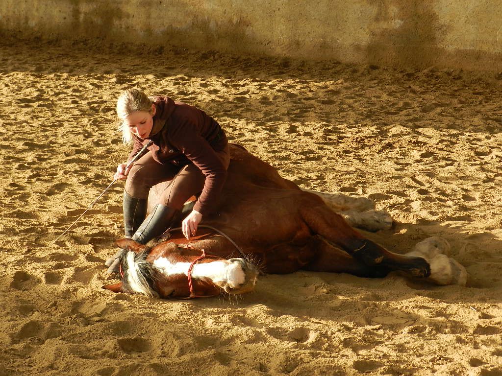 Déconnecté | En fait avant de passé en liberté tu attends d'avoir un cheval vraiment autonome sur son cercle sans aucun contact sur la longe ? Il faudrait que je reprenne ça, j'aimerais bien y arriver. Pour le assis, je lui fait faire plutôt dans la carrière mais c'est vrai qu'elle glisse pas mal. Il faudrait que j'essaie dans leur stabulation peut être que ce serait plus facile pour elle. Et pour lui faire faire la jambette en faite tu la cale du côté où elle "penche". |