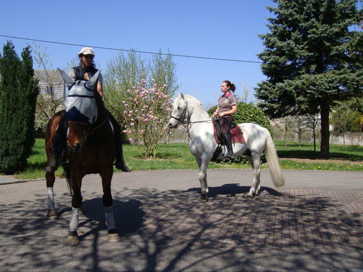 | Dire merci | Coucou à toutes ! ça fait trèèèèèèèèèèès longtemps que je ne me suis plus connectée ici, j'espère y retrouver quelques personnes avec qui les échanges étaient bien sympas.. Voilà donc quelques news de mon cornichon ! Albo et moi avons changé d'écurie il y a un an et demi : enfin du calme et de la sérénité pour tous les deux, qui avons d'ailleurs retrouvé une réelle complicité.... Comme quoi, l'environnement fait beaucoup ! Le loulou a maintenant un chouette box-paddock qui lui permet de faire le concierge toute la journée et on serégale en trotting et ballade-travail en forêt ou au bord des canaux. Au travail, on a bien progressé tous les deux en gardant le moral et en se faisant plaisir ! On a même fait une rando de 2 jours l'an dernier avec son copain Harry qui nous a malheureusement quitté depuis . Place au photos..... dès que je capte à nouveau comment faire ! |