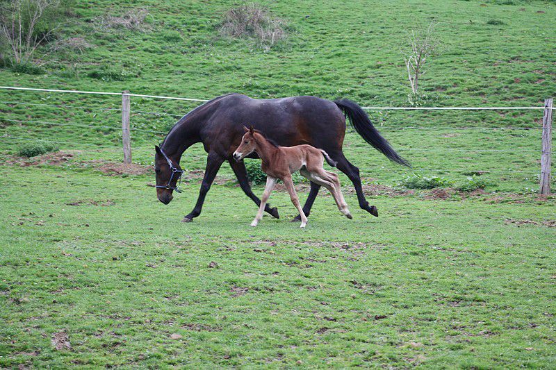 | Dire merci | Merci ^^ Non moi je n'ai pas vu , c'est une stagiaire du haras qui m'a prit les photos du poulinage.Le poulain et la mère sont SFA Les parents du poulain: Noblesse d'olizy et Mozart de Beny Les parents de Noblesse: Uptolove fontaine et Hotesse d'olizy |