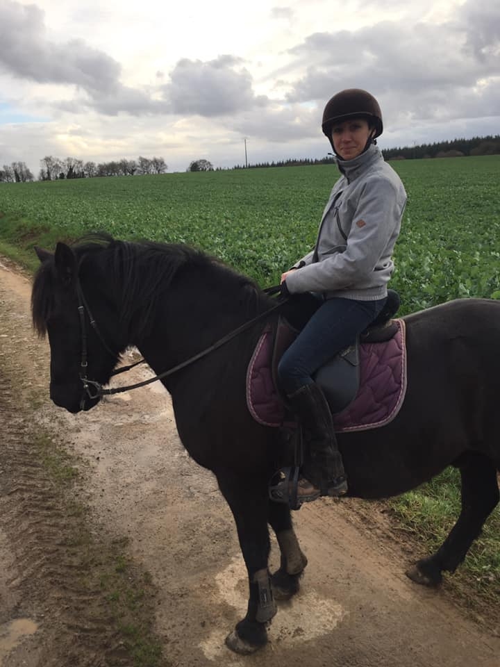 | Dire merci | quelques news! Coco a bien demenagé, il s'entend bien avec ses nouveaux copains du coup on est plus tout seuls a se balader c'est sympa et motivant, et il y a un peu plus de chemins donc c'est cool! même si pour le moment on est limités par l'état des chemins avec la flotte qu'il y a eu, c'est la cata. ma selle Oner est partie a l'essai, du coup on m'a prêté une Norton, bon ba ma fois c'est pas si mal, au moins ca tourne pas sur le gros, et je le trouve plus a l'aise dans ses allures, du coup une fois ma selle vendue je vais reprendre une mixte genre Wintec, comme j'avais avant et j'etais vraiment pas emmerdée avec. petite photo, ca caille mais au moins on a du SOLEIL |