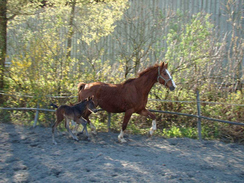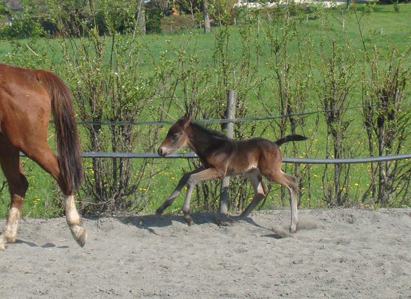 | Dire merci | Oui oui d'autres photos arrivent!! La maman est une KWPN, par Gribaldi Et le papa est Sandreo, un KWPN aussi Voilà le papa! ![]() Et la pouliche va être inscrite au Stud Book Z |