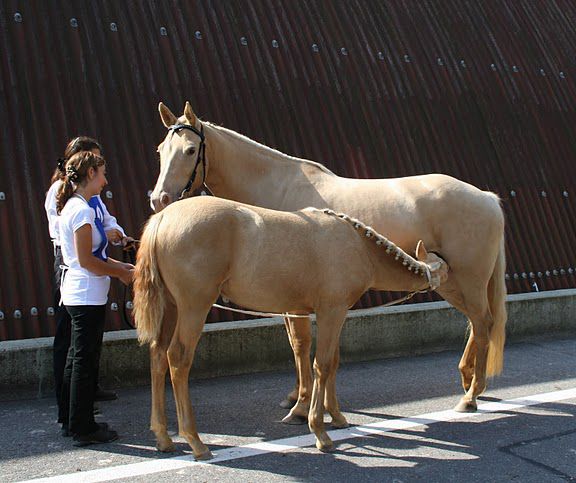 | Dire merci | Enfin là! Après 8 jours de retard, et 11 nuits à l'écurie, Pacane a pouliné ! Depuis la nuit du 18 elle cirait et le lait coulait tout seul; on a pas quitté la jument des yeux de la journée..mais pas de poulain ! Elle l'a fait le 19, un peu avant une heure du matin. Une jolie pouliche, très grande ! Donc maman Pacane, et papa Tislero. 1ère fille de Tis (mais sûrement pas la dernière). C'est drôle, car il y a deux ans, Pacane avait fait le seul fils de l'étalon qu'on avait choisi, et cette année elle fait la seule fille, pour l'instant. En tous cas on remercie beaucoup l'élevage Valdraco, car elle est très réussie ! Tout s'est bien passé, la pouliche s'est vite levée, maman a délivré, et elle a trouvé facilement le chemin de la laiterie malgré une maman bien chatouilleuse. Des beaux yeux bleus! Elle est champagne, on pense champagne or, mais à confirmer.. Se sera donc Beyleen de la Prequel Pouliche en pleine forme et très dégourdie, mais pas peureuse pour un sou ! Les parents ont vraiment bien travaillé! C'est tout ce que l'on espérait! Pouliche + champagne Première photo de la petite ![]() |