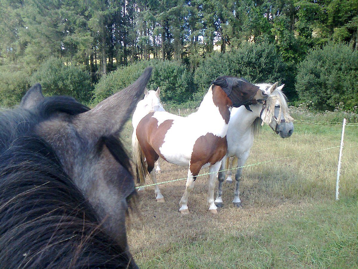 ![]() ![]() ![]() Izys ne restant pas seul au pré, j'avais demandé aux voisins de mettre leur ponette avec elle au pré, ce qui les arrangeait bien, Jade est donc depuis 2007 également à la maison, 1,06 m, elle nous a quitté un an avant Izys à ses 26 ans, elle a vécu une retraite heureuse avec les nôtres. ![]() Mais deux cavalières pour une jument n'étaient pas possible , 6 mois plus tard........ l'arrivée de Radja en 2018, un hongre typé appaloosa de 3 ans, tout comme moi il débutait, nos débuts ont été assez difficile malgré l'entourage équestre qu'on avait d'où le proverbe mais on a réussi ensemble. A présent, il a 18 ans, toise 1.53 m, aujourd'hui, c'est le doyen de la troupe. ![]() ![]() Nous avions chacune notre monture (ma fille et moi même), que demander de plus ? mais mon plus grand rêve m'a rattraper (avoir un frison) le jour "J" arriva à la réservation d'une pouliche de quelques semaines en 2010. Elle arriva chez nous à ses 7 mois, voici Gadys (A Gladys de St Jean) OC. C'est une petite frison d' 1,53m, aujourd'hui, elle a 13 ans. ![]() ![]() J'étais comblée.... sauf que , un ptit dernier est arrivé (il n'était pas le dernier), pas prévu celui là mais je ne pouvais le laissé passer encore une fois.Voici Tonerre, hongre poney pie bai d'1.31 m, arrivé en août 2012 à la maison à l'âge de 5 ans. Aujourd'hui, il a 15 ans, c'était le poney de mon frère qu'il avait vendu à ses 3 ans à un poney club qui l'a remis en vente 2 ans plus tard. Explications spoiler Spoiler
