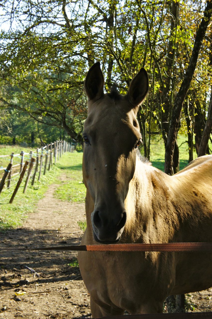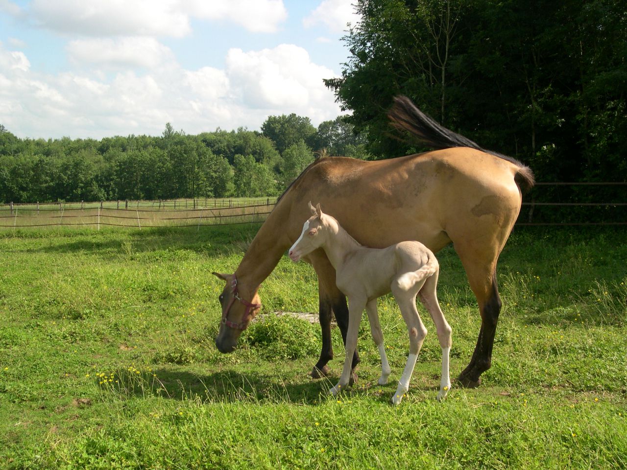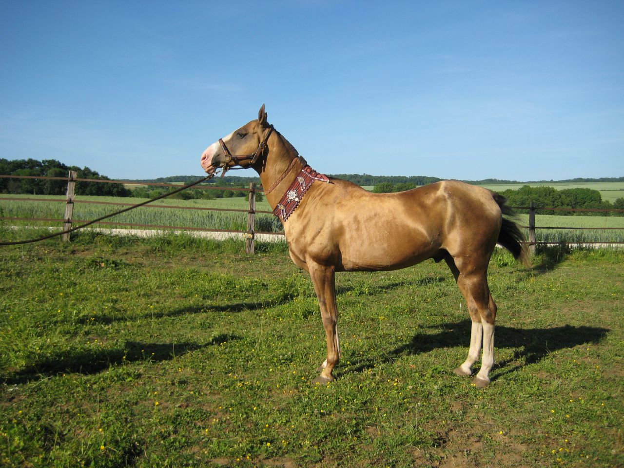 | Dire merci | Elle est mimie la petite Bedo, vous faites quoi avec ? Vous aurez des poulains cette année ? Je croyais que le gène dun n'existait pas chez les AT ? Concernant la robe dorée, c'est du au poil: il est beaucoup plus fin et soyeux que chez les autres chevaux, ce qui provoque ces reflets dorés. Certains avancent que c'est provoqué par l'action d'un gène, mais rien de prouvé. On rencontre aussi ces nuances métalliques chez les chevaux Don. |