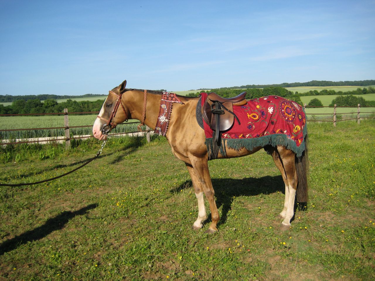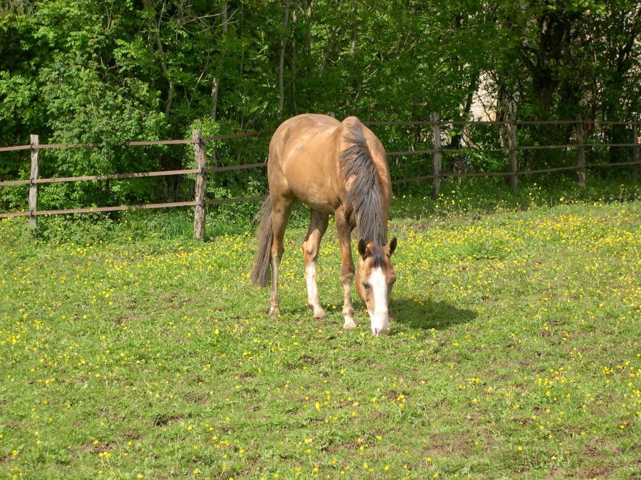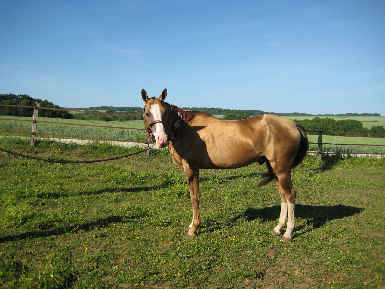 | Dire merci | Elle est mimie la petite Bedo, vous faites quoi avec ? Vous aurez des poulains cette année ? Je croyais que le gène dun n'existait pas chez les AT ? Concernant la robe dorée, c'est du au poil: il est beaucoup plus fin et soyeux que chez les autres chevaux, ce qui provoque ces reflets dorés. Certains avancent que c'est provoqué par l'action d'un gène, mais rien de prouvé. On rencontre aussi ces nuances métalliques chez les chevaux Don. |