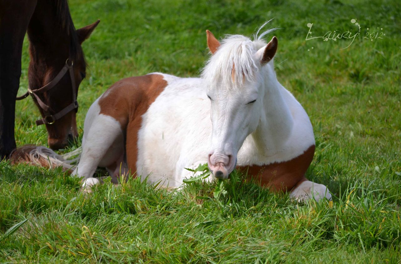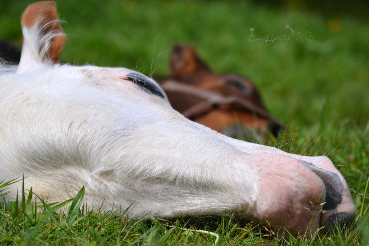 | Dire merci | J'arrive hier matin, les gros poulains à fond ![]() Bijou s'en fou royalement de ma présence, préfère se rouler ![]() ![]() La tronche de Billy quand il s'étire ![]() Après les étirements, forcément, on baille à s'en décrocher ma mâchoire *** |