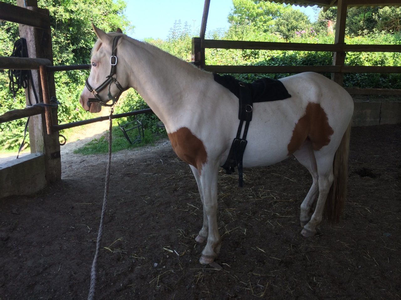 | Dire merci | Aah et quand même, une petite photo de pas grand chose mais qui veut dire tellement de choses pour moi : Voilà, le premier sanglage du Titou, je suis allée le chercher au champ à l'heure ou je savais que je serais tranquille à l'écurie, pas un chat, je l'ai mis dans le rond de longe, je lui ai montré l'attirail, je lui ai mis sur le dos, comme il connaissait déjà, il a pas réagi, et puis j'ai sanglé, petit à petit, il n'a pas sourcillé ... J'étais fièèèère mais fière ! j'avais la banane comme pas permis ... Je le sentais pourtant, que ça se passerait bien... mais qu'es ce que j'étais contente ![]() |