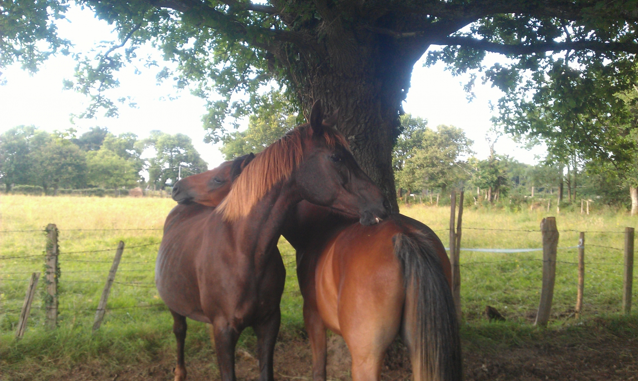 | Dire merci | Sinon mes deux loulous vont (encore) déménager. Ils se rapprochent de chez moi, enfin ! Ils vont être ensemble avec un autre jeune, un demi frère de Naïm. Ce n'est pas l'idéal pour Caïda Mais je pourrai y aller plus souvent, j'en ai marre de ne pouvoir y aller qu'une fois par semaine. Le gros point positif c'est qu'on sera entourés de 3 centres équestre / pensions. Dont une où on pourra utiliser la carrière et avec une mono aux tarifs vraiment abordables ! Donc l'année prochaine à nous le débourrage ! |