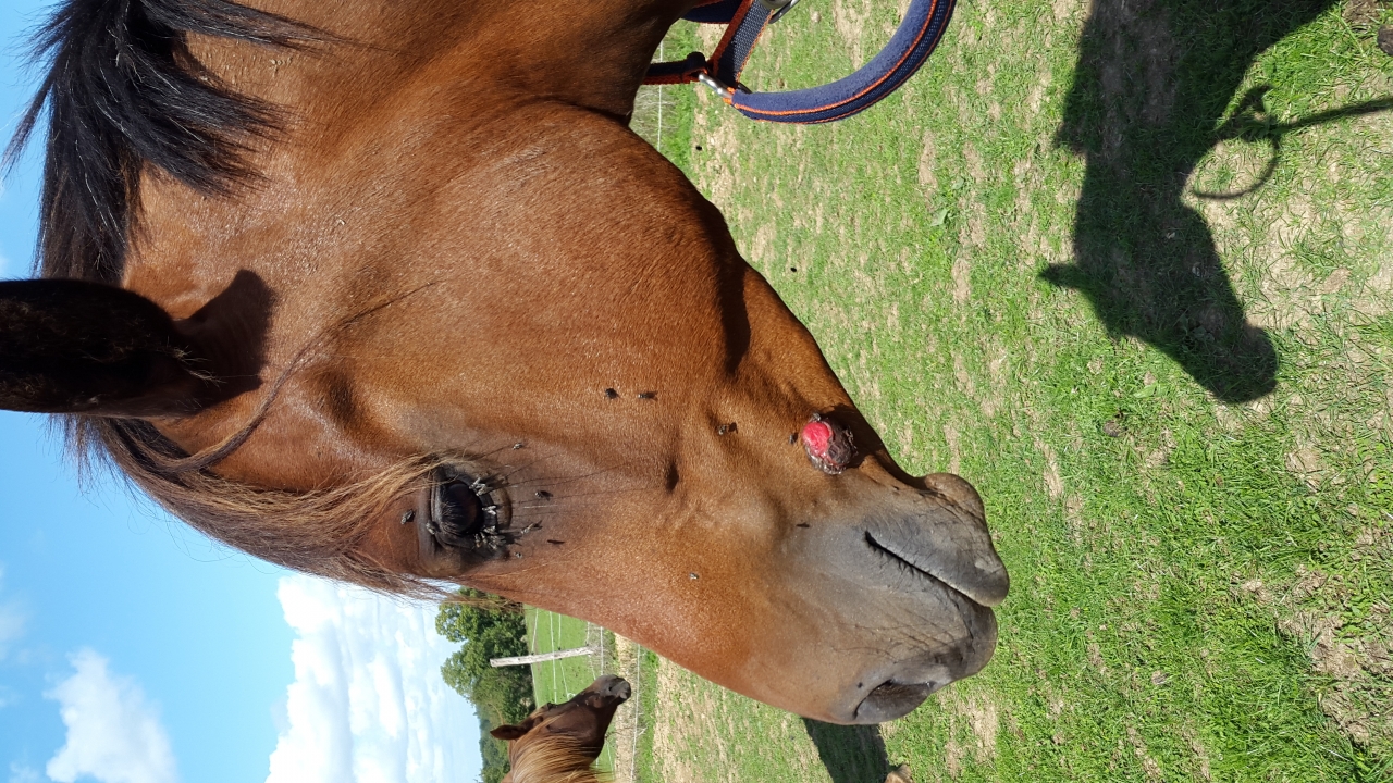 | Dire merci | Des nouvelles du front : la grosse verrue a diminué de moitié Je commence tout de même a en avoir marre, c'est très long.. Mais bon ca fonctionne c'est le principal Dès qu'elle tombe il file au débourrage Parti comme il est ca va durer jusqu'à l'automne et il n'ira au débourrage qu'en 2017 Caïda va bien ! Elle a vu le dentiste vendredi, elle n'a pas perdu d'autre dent depuis l'année dernière, il ne lui en manque qu'une ! ![]() |