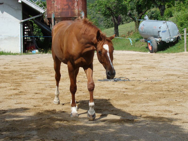 | Dire merci | Saby, il pleut depuis qu'il est la presque, donc je ne sais pas si ont peut mettre ça sur le compte de la sécheresse? en tous cas il est vraiment gêné, ça se vois. Sur l'antérieur gauche il a mm réussi a cassé son talon intérieur, j'ai du mal à comprendre comment il a fait d'ailleurs! De toute façon le maréchal donnera son avis jeudi, il est très ouvert et ne se contenteras pas de lui coller une paire de fer! Il parrait ma jument pied nus correctement, je veux dire pas un parage de pose de fer ( j'ai pu comparer son travail avec celui d'une pro pareuse). |