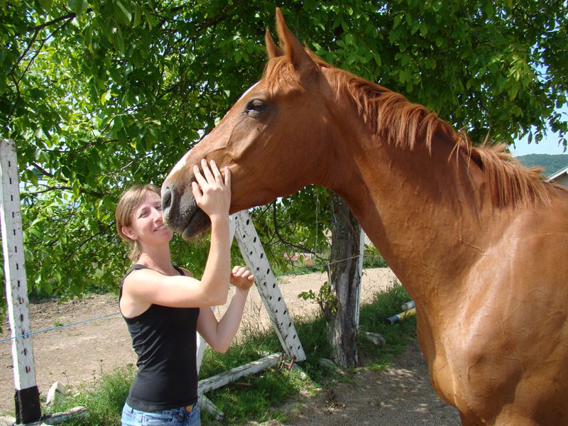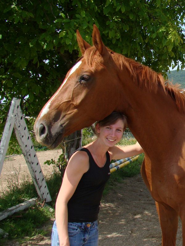 | Dire merci | Je suis fan de mon cheval!!!! Cet aprem je l'ai emmené faire une petite balade en main, il m'a fait rêvé!!! On a tout fait: voitures, tracteur, plaques d'égout, chemin étroit et raide par endroit, traversé un ruisseau, enjambé des troncs avec plein de branches, passer entre une camionnette et une voiture ou j'étais sur que ça passerai pas, etc.... Et il a été remarquablement calme.... C'était un peu genre "ah il faut passer là? bon ba ok je te suis!" Et un cheval super respectueux, qui garde ses distances, qui s'arrête quand je m'arrête, qui repart quand je repars, qui me marche pas sur les pieds... Bref il est parfait!!! C'est bizarre mais des chevaux j'en ai cotoyé des centaines, et il n'y a que chez Quenya et Denver que je retrouve certains traits de caractère que j'adore... Ils se ressemblent beaucoup tout le deux au niveau de leur caractère... Comme quoi je l'ai pas choisi par hasard celui là!!! |