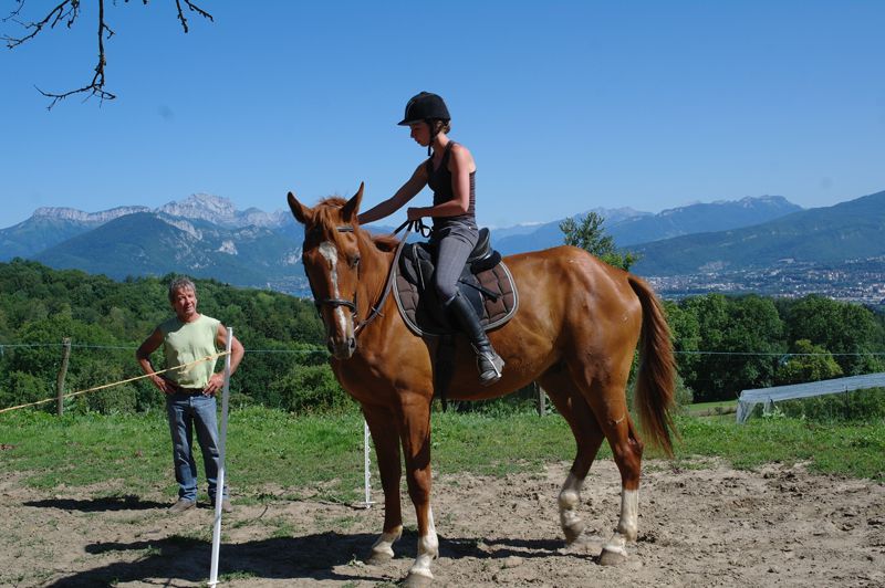 | Dire merci | Voilà les photos! 1ère difficulté du PTV: l'immobilité Au début il a voulu me suivre quand je suis sortie du cercle, et puis il a vite compris qu'il fallait pas bouger! ![]() Bébé tout sage! ![]() Ensuite c'était normalement le montoir à droite. Bon moi je suis montée à gauche... Vu comme il est grand je voulais pas retomber comme une grosse m*rde dessus...! ![]() Après il fallait ouvrir la porte. Il était pas du tout stressé par la corde! Il s'en foutait royalement! Le seul truc c'est que j'avais du mal à le faire pivoter, normal quoi!!! Du coup j'ai laché une fois la corde, mais on me la redonné et j'ai pu fermer la porte sans problème!! ![]() ![]() Il regarde ce que je fais ![]() Et on referme! ![]() Contente de mon loulou!!! ![]() ![]() Ensuite on se dirige vers les branches basses. Je me penche déjà en avant pour qu'il ne soit pas étonné d'avoir mon poids sur ses épaules. ![]() |