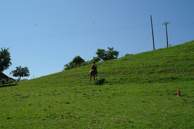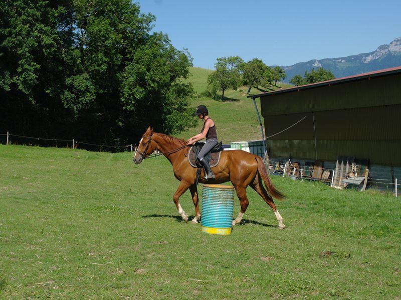 | Dire merci | Il avait très bien passé dessous à pied, mais avec moi dessus il a un tout petit peu hésité, du coup on me la tenu. Il est marrant il baisse la tête aussi!![]() Après c'était la haie. Je ne l'ai bien sur pas sautée, mais je lui ai montré. Il s'en fout complètement! ![]() ![]() Ensuite le plan ascendant: nickel! Il a un peu zig zager mais aucun souci! ![]() ![]() Après le slalom: trop facile!! ![]() |