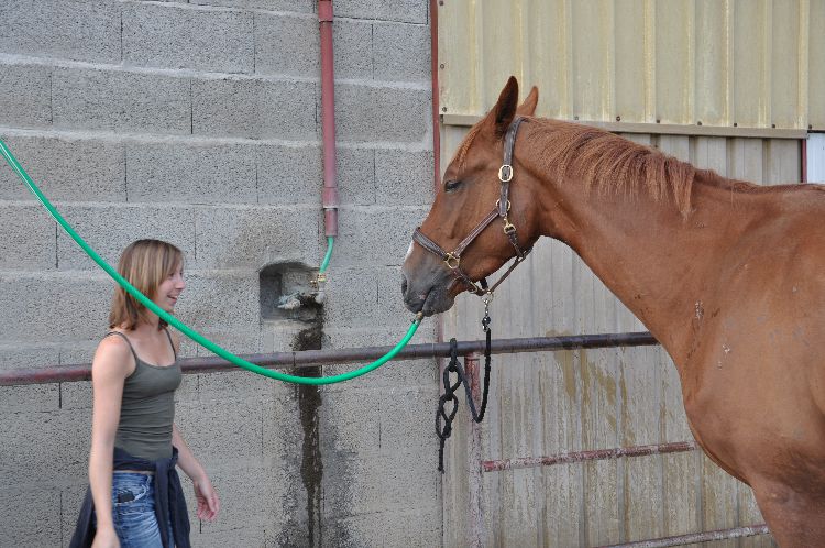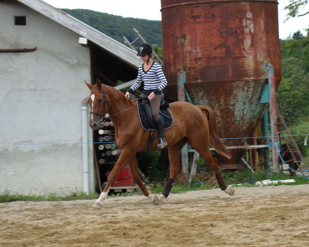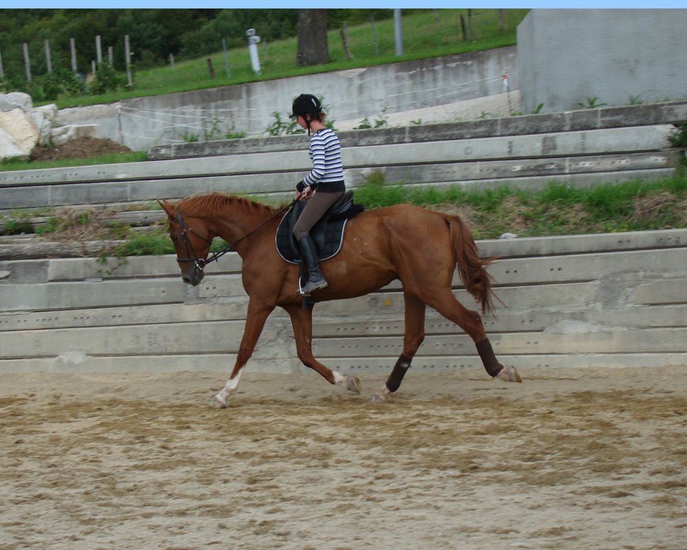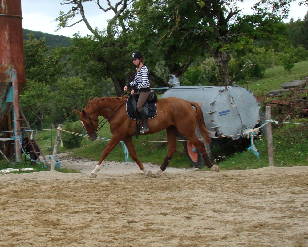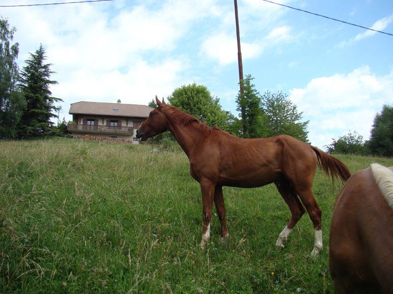 | Dire merci | Ca fait longtemps que j'ai pas donné de nouvelles!!!! Denver a eu un petit coup de moins bien pendant un moment... Il a beaucoup maigri, était pas très en forme et il a fait une grosse gale de boue dont je ne suis toujours pas venue à bout.... Mais maintenant il va mieux, il a changé de troupeau parce que ça ne se passait pas bien dans l'autre. Et depuis il a déjà regrossit! Et il est bien plus en forme!!! A monter c'est un vrai régal! En balade, il est super motivé, passe partout, peur de rien (à part les flaques!!!!) En carrière, il est très appliqué, il progresse à une vitesse phénoménale!!! Voici quelques photos de sa 6ème séance en carrière! ![]() ![]() ![]() |