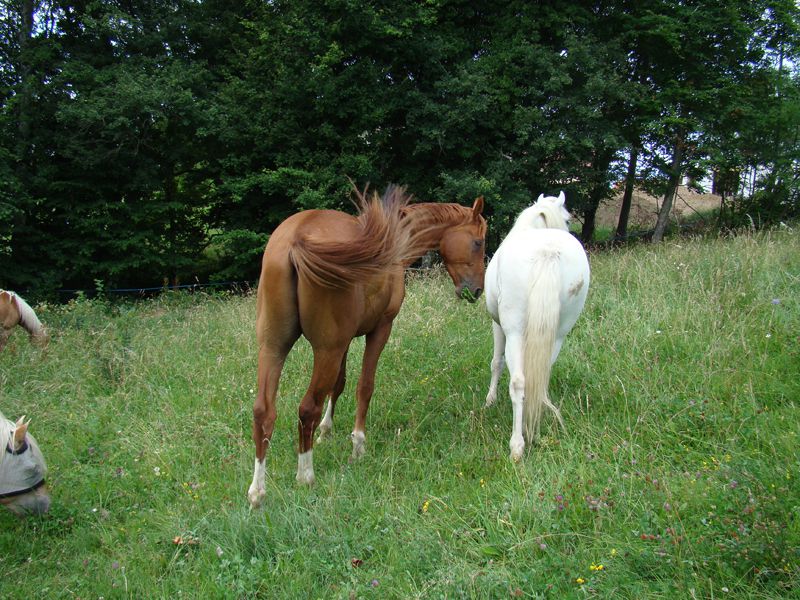 | Dire merci | Juste une petite photo de mes 2 inséparables au pré pour vous faire patienter, j'en mettrai d'autres plus tard![]() |