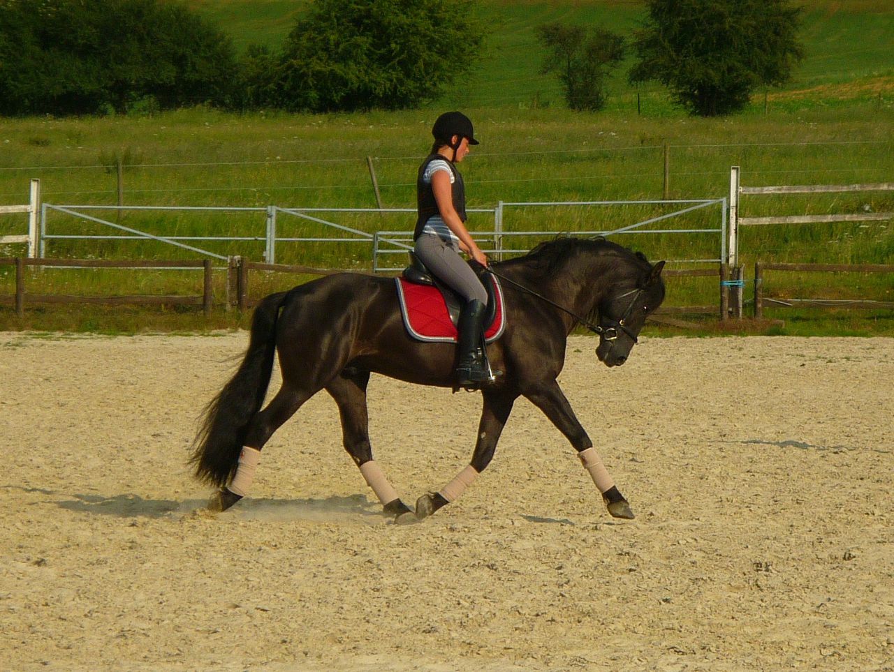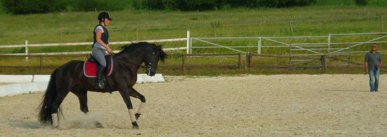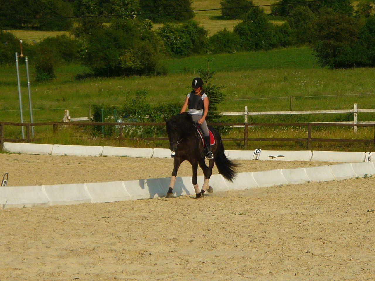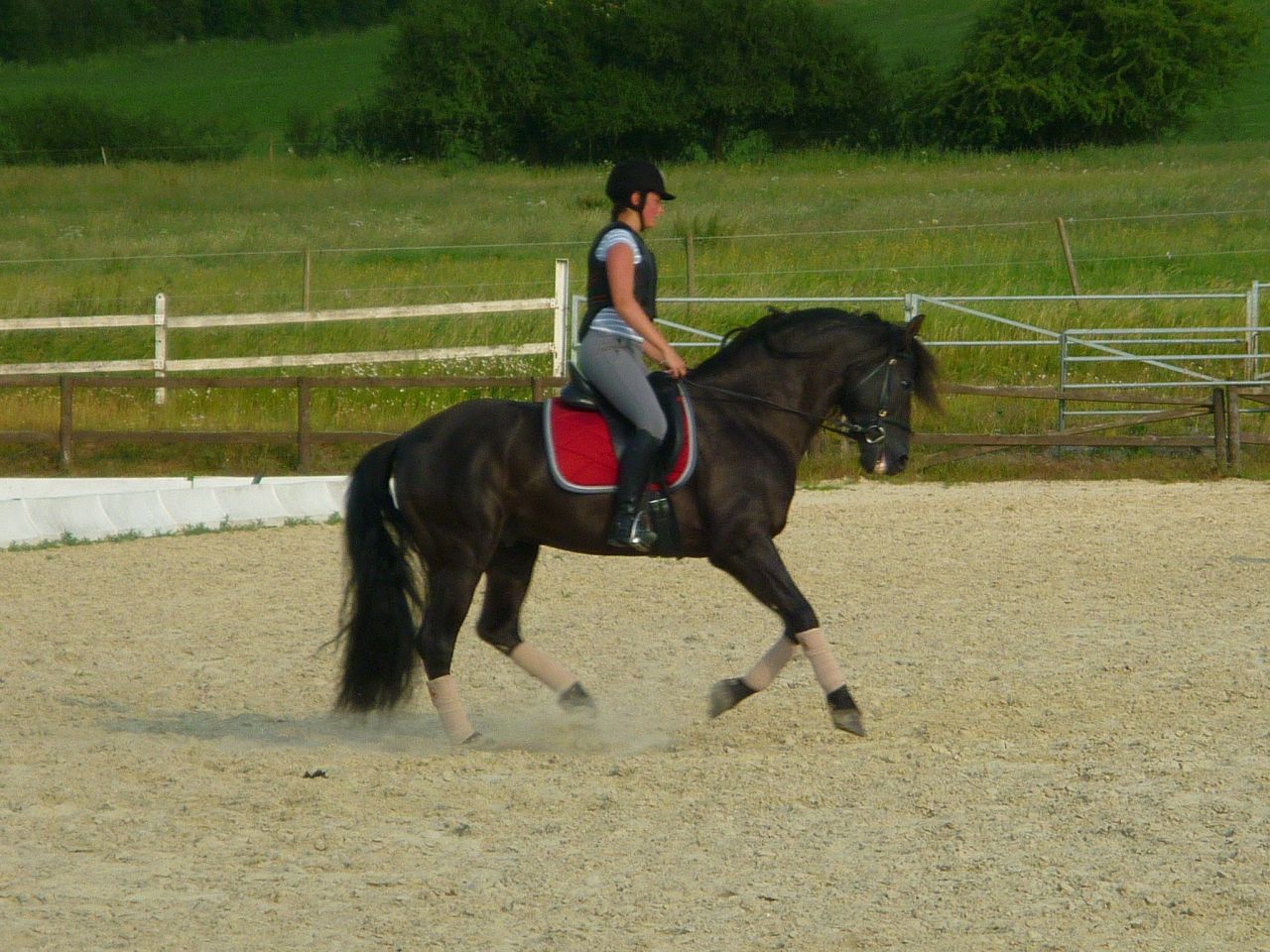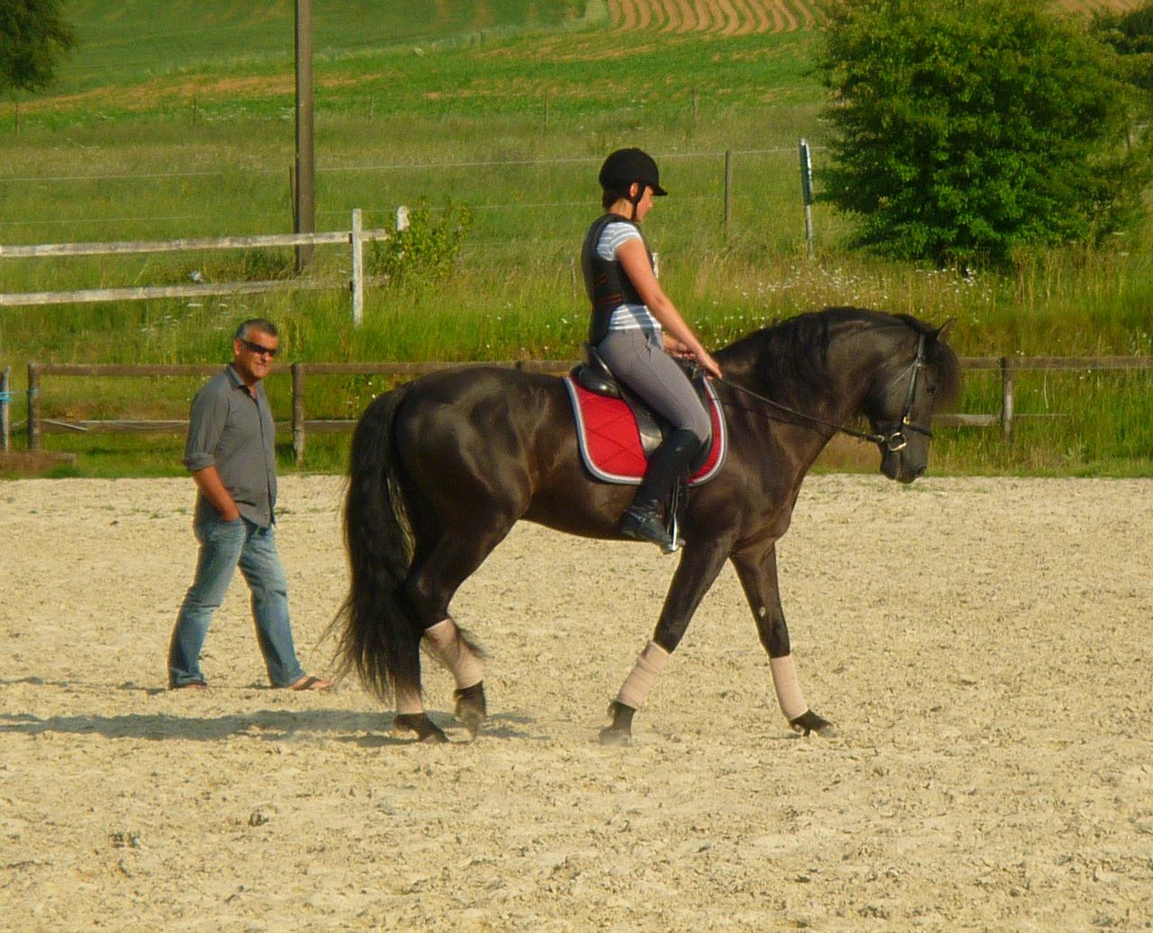 | Dire merci | Il est vraiment vraiment super leger en bouche c'est vrai.. encore plus que ma jument qui l'etait deja.. Mais monsieur a 2 dents de loup.. donc a retirer lorsqu'il arrive chez mon moniteur En premier lieu ben je pense travailler le trot puis commencer tout doucement les exercices sur 2 pistes et on verra son evolution.. Des balades aussi puis des concours en septembre et octobre si je m'y suis bien faite et une sortie a la mer fin septembre Voila ! |