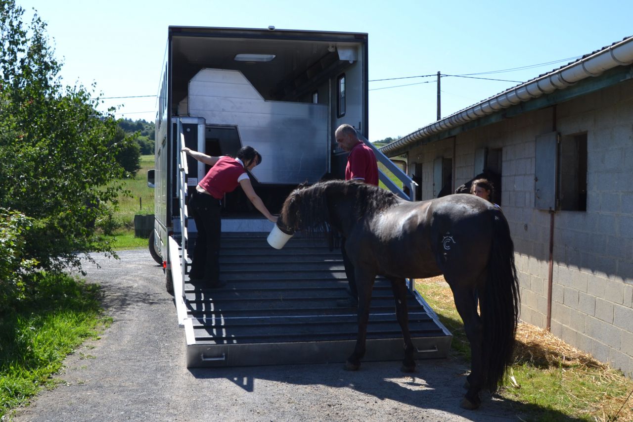 | Dire merci | C'est clair que monsieur a son petit caractere.. Mais franchement apres 1h de tentative j'ai pensé qu'il serait mieux dans un van au calme et que l'on travaillerai la monte dans le camion par après une fois qu'il sera adapté a sa nouvelle écurie.. Ben oui en plus il doit s'avoir monter en camion.. on part fin septembre un week end a la mer.. en camion évidement La il aura pas trop le choix |