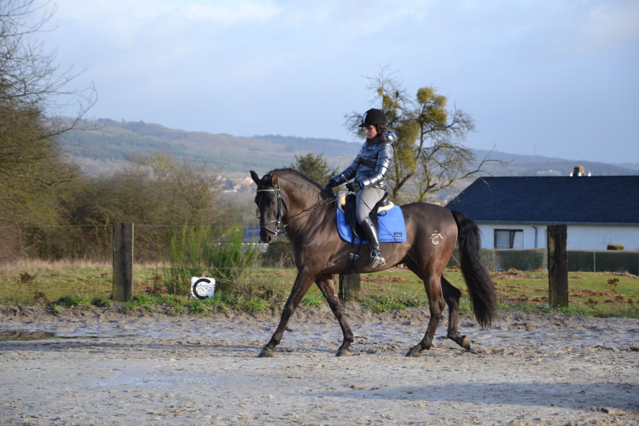 | Dire merci | Tessa.. Pour ce qui est de la nourriture trop riche, ca peut être ca puisque on le complèmente en orge et épautre aplatie depuis un petit temps.. Il a plus de foin que avant aussi ![]() Pour ce qui est du pas assez de sorties, la semaine passée il est sortit lundi, mercredi, vendredi, samedi et dimanche.. 5 jours sur 7 alors ca je ne pense pas non Douleur je ne pense pas non plus.. il vient de voir l'ostéo, le maréchal et il a vu le dentiste.. j'ai changé ma selle pour lui en prendre une mieux adaptée justement ![]() Je pense simplement que je ne lui en demande pas assez au travail, meme au travail en longe par exemple.. Il a l'habitude de se la couler douce et quand je lui demande un peu de bosser, il a tellement pas l'habitude qu'il me dit : Hé oh stop moi j'ai pas envie l'humaine ! Dimanche, ce n'est pas moi qui le longeais, il a du plus se bouger et surtout quand l'humaine en avait envie et pas quand cheval avait envie et après a la selle il a été super, réceptif et il voulait bien bosser ![]() Je pense qu'il faut que je le pousse un peu plus, que je lui en demande un peu plus aussi.. Parce que il a la maturité pour travailler c'est juste un fade |