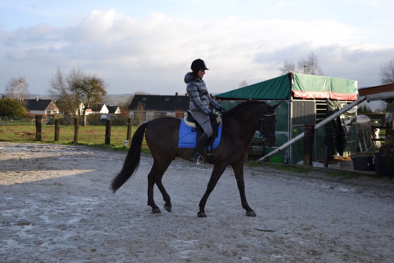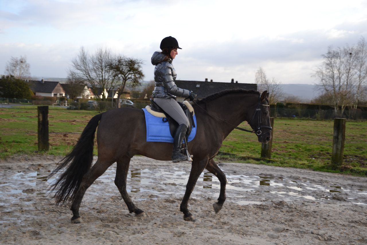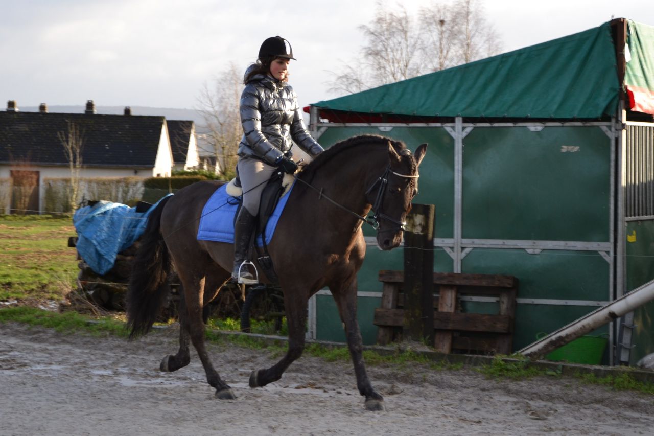 | Dire merci | Alors pour la petite histoire / résumé.. Avec Bestline, on décide d'aller échauffer les deux andouilles avec une petite balade tranquille au pas dans le village. Balade qui n'aura pas été si tranquille que ca pour finir Twsit et Ilou se stressaient l'un l'autre, dé qu'une voiture passait ca partait en vrille, fin bref on à écourté la balade pour éviter de se ramasser sur le macadam Bref nous voila de retour a l'écurie toute les deux à cheval.. Je me dis que je vais longer un peu Ilouso en piste pour qu'il travail un peu avant la monte (Il est beaucoup mieux après, plus flexible, et encore plus léger ) Nous voila partis en piste, et une séance de longe d'environ 25 min. Il a été vraiment super, à l'écoute malgré Twist qui faisait faire du ski nautique à Bestline dans l'autre partie de la piste Et pour finir, nous voila a cheval, Bestline avait été remettre Twist au mur histoire de monter chacune a son tour et de pourvoir se prendre en photo ![]() Tout se passe bien au début.. Il est en équilibre au pas, il est assez flexible et marche bien, bref je suis contente de ma séance de longe qui apparement aura été bénéfique ![]() Suite.. |