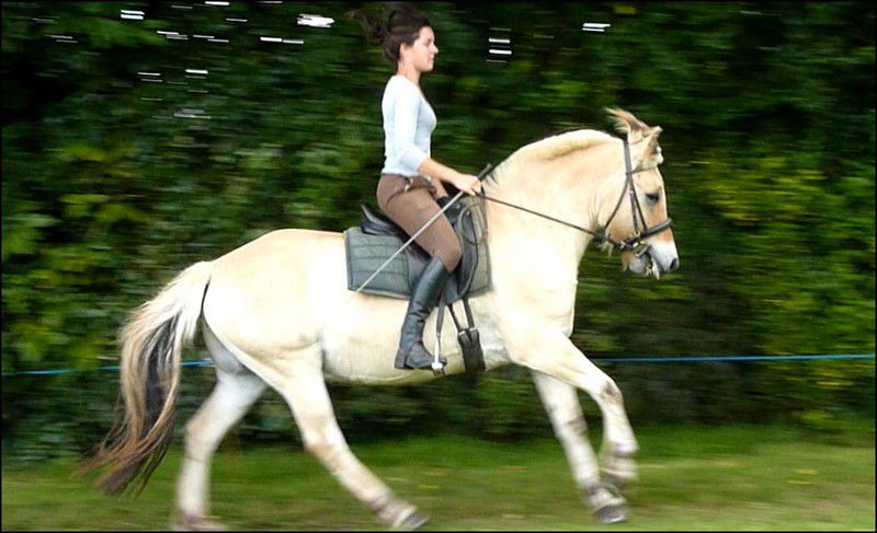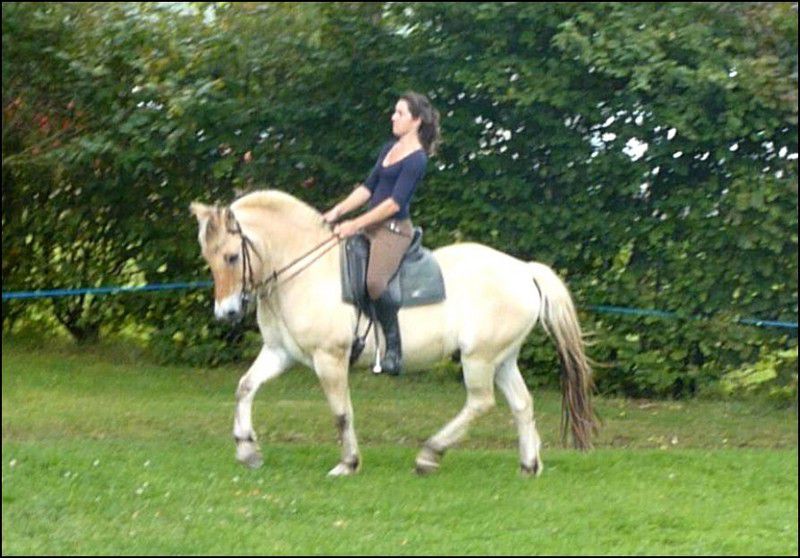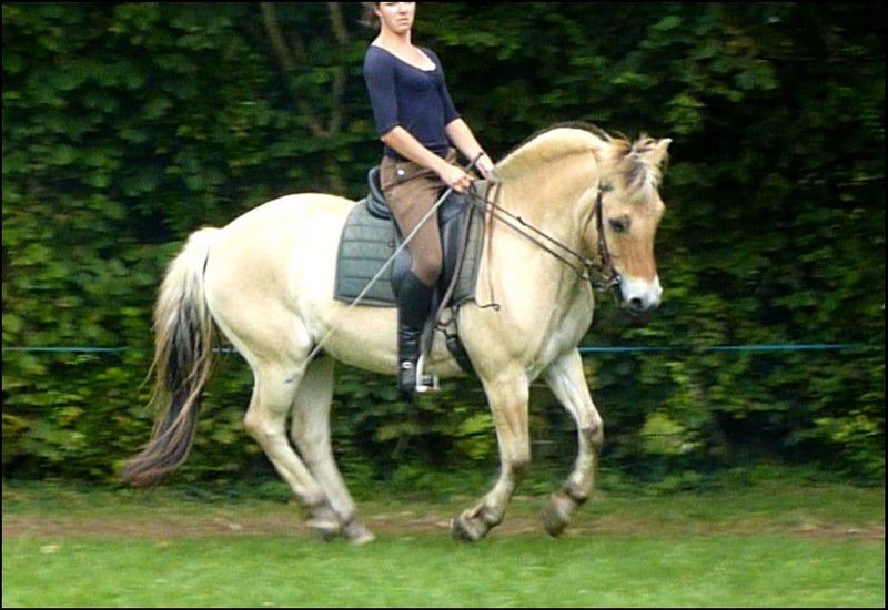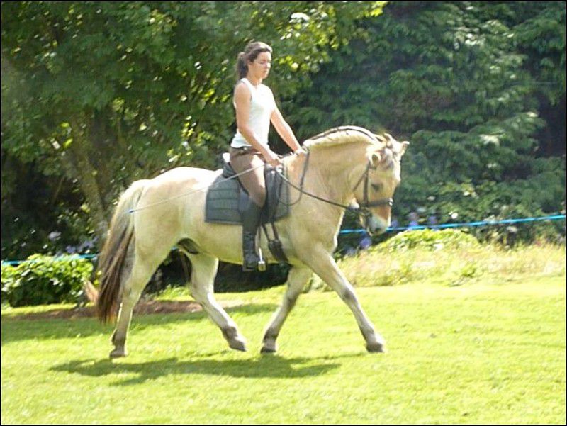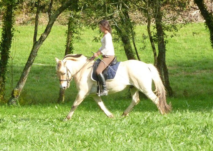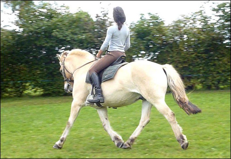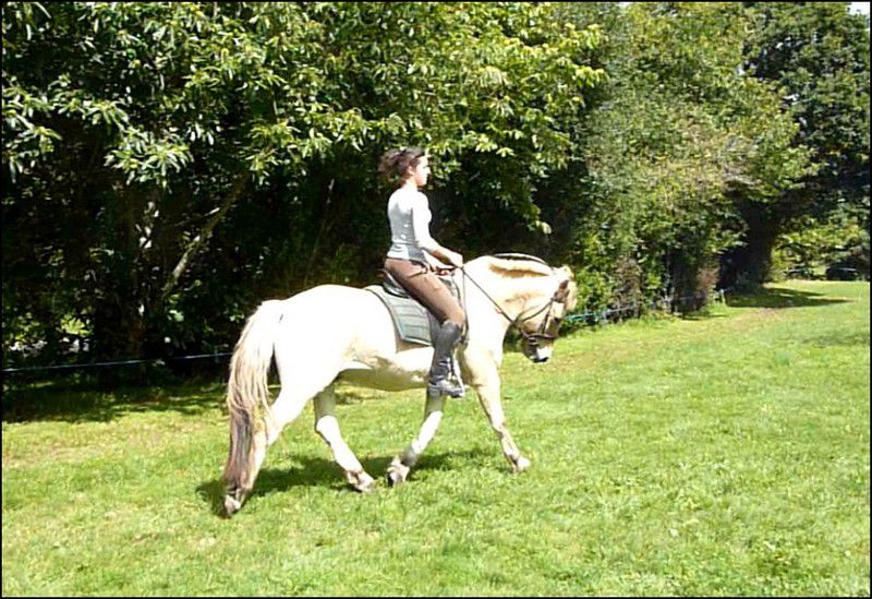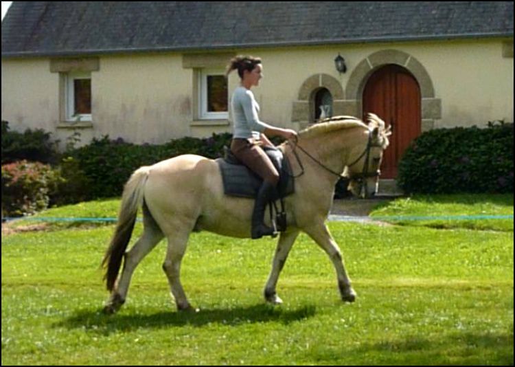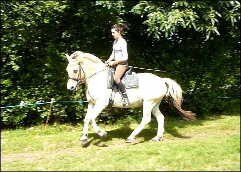| Dire merci | Oui on a testé la bride pour Kim ! Il était top ! Beaucoup plus stable, moins de bagarre, une impression de facilité ! Mais bon, on va pas tomber dans le piège du confort. C'est quand même bien contraignant la bride. Je le prendrais quand même bien plus souvent en filet qu'en bride. En plus je ne monte que très rarement avec quatre rênes. Je manquais donc de précision et d'efficacité. ![]() Je l'aurais préféré un peu moins plaqué et plus léger mais au moins c'est tonique ! ![]() Rectitude, ça c'est bon ! ![]() ![]() Ca c'est déjà plus léger que sur la photo au trot plus haut. ![]() ![]() On pourrait presque croire qu'il passage ![]() ![]() ![]() |