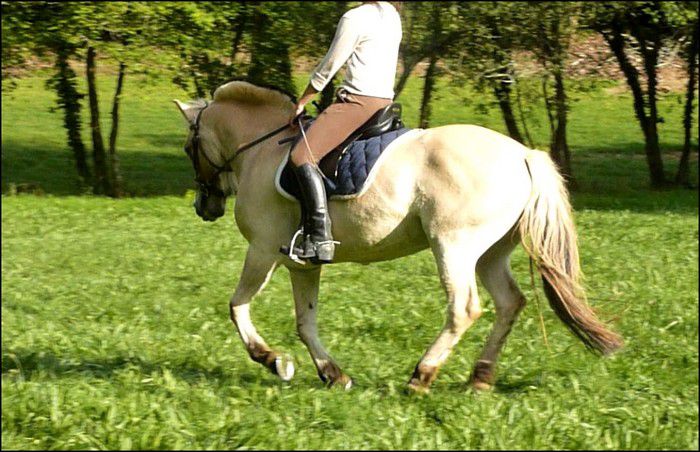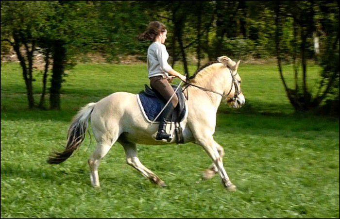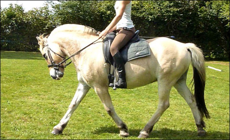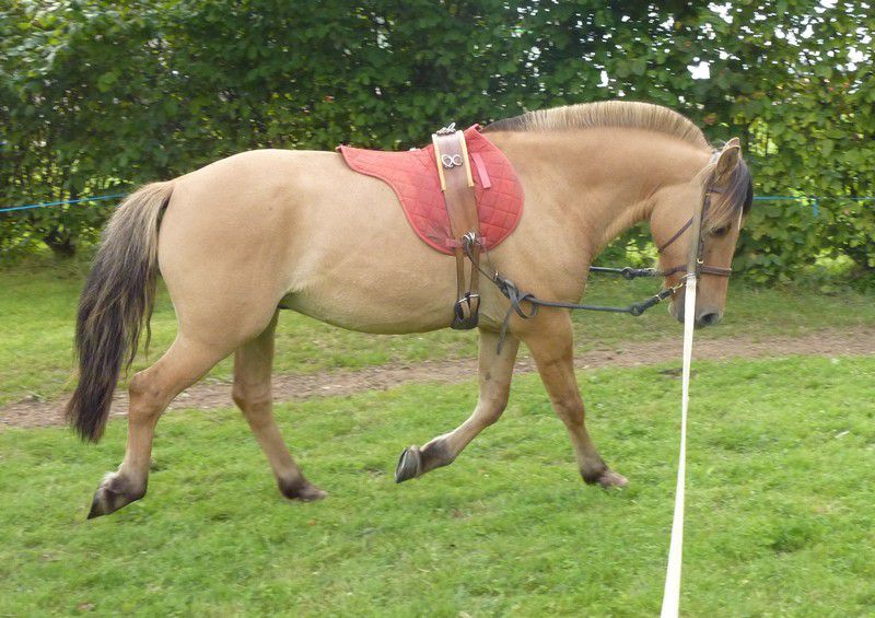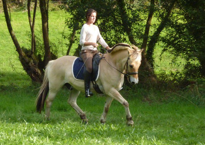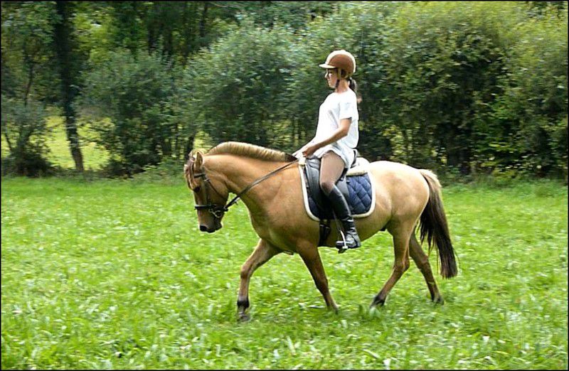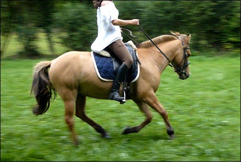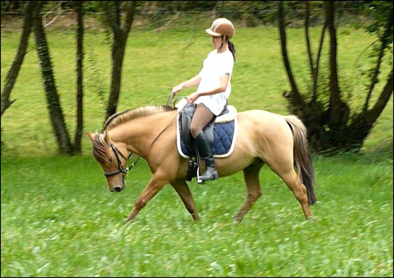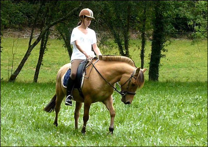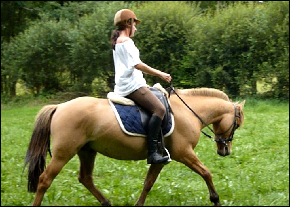 | Dire merci | Oui on a testé la bride pour Kim ! Il était top ! Beaucoup plus stable, moins de bagarre, une impression de facilité ! Mais bon, on va pas tomber dans le piège du confort. C'est quand même bien contraignant la bride. Je le prendrais quand même bien plus souvent en filet qu'en bride. En plus je ne monte que très rarement avec quatre rênes. Je manquais donc de précision et d'efficacité. ![]() Je l'aurais préféré un peu moins plaqué et plus léger mais au moins c'est tonique ! ![]() Rectitude, ça c'est bon ! ![]() ![]() Ca c'est déjà plus léger que sur la photo au trot plus haut. ![]() ![]() On pourrait presque croire qu'il passage ![]() ![]() ![]() |
