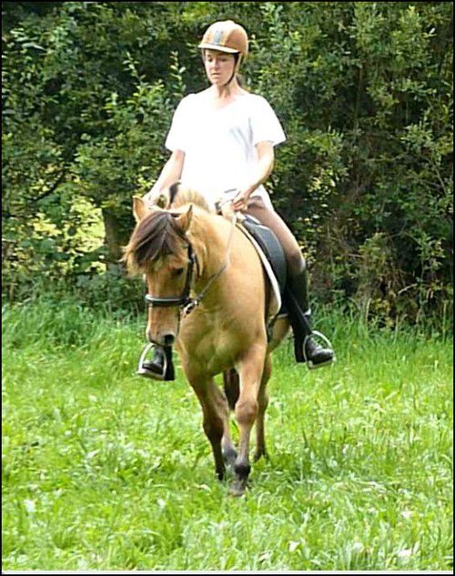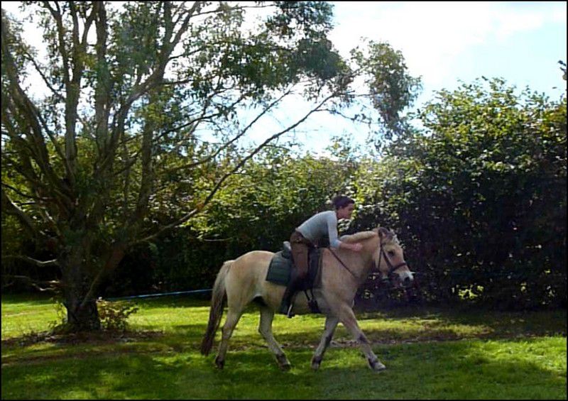 | Dire merci | Là j'aime bien ! ![]() A la fin du travail au trot, je peux l'avoir dans une attitude plutôt soutenue sur un contact léger. ![]() On termine par quelques extensions. ![]() Puis au galop il m'a agréablement surprise. Il se soutient beaucoup, beaucoup plus que d'ordinaire ! ![]() C'est moins facile au galop à gauche qu'à droite. Alors je le laisse un peu faire son bazar. N'empêche que je trouve son attitude super sympa, je trouve qu'il va chercher la main ! ![]() Je commence à le titiller pour qu'il se monte un peu et soit moins ouvert. ![]() Et voilà l'attitude finale qu'il me donne, sur un contact super léger. Donc super contente ! ![]() Quelques photos du p'tit et de se bouille à bisous ![]() ![]() ![]() |
