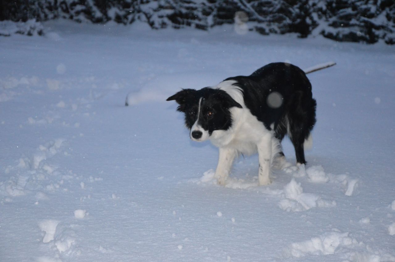 | Dire merci | Bref, il a neigé toute la journée sans la moindre pause (et il neige toujours, d'ailleurs )![]() 15 cm .. ![]() La route, c'est une patinoire ... ![]() Y a que le chien que ça amuse ![]() Mes pieds quoi .. ![]() |