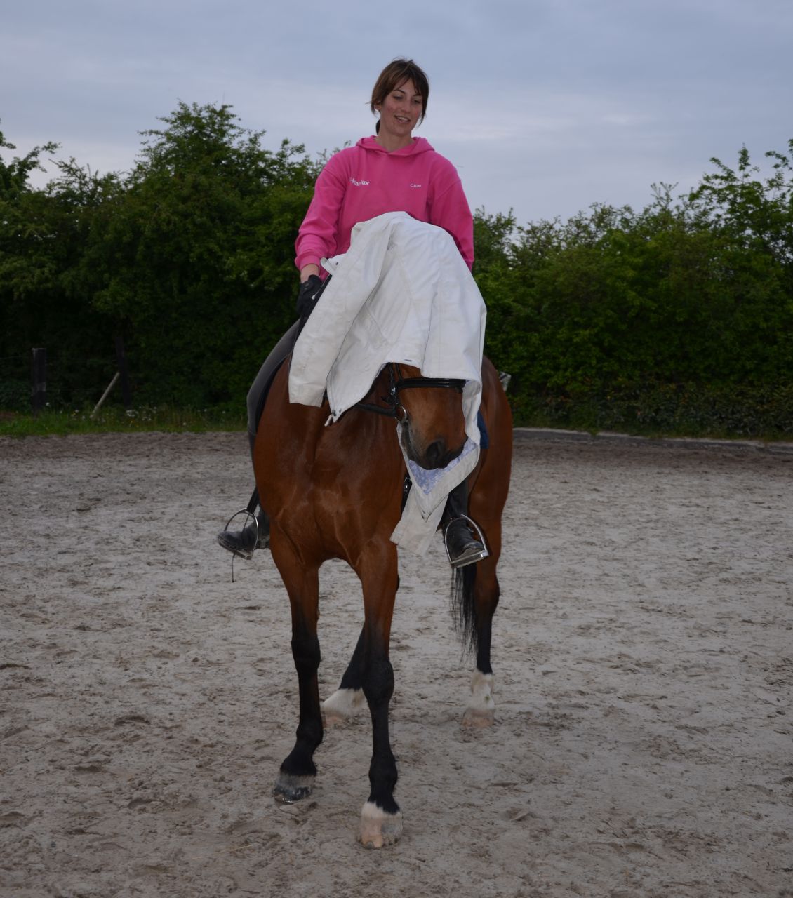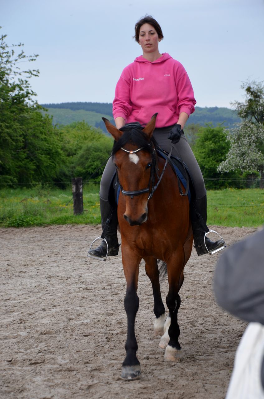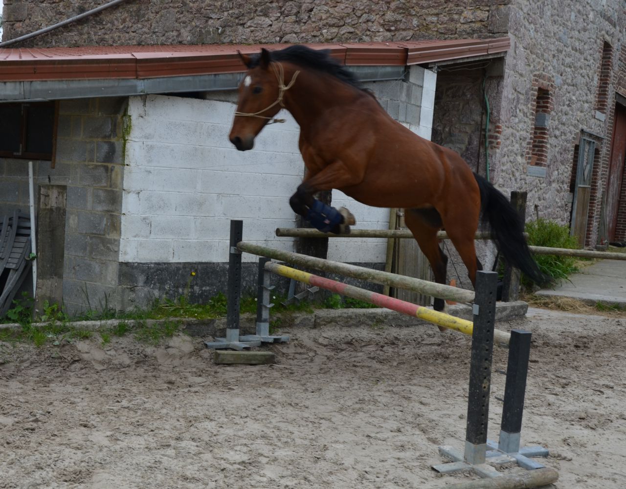 | Dire merci | Je remets les news d'hier ! ____________ Hier, on profite d'avoir Clo pour refaire une séance de saut en liberté ! ![]() Là il a du passer 1m05, 1m10 même, pas mesuré, mais un peu plus que la semaine passée .. Faut le motiver avant et il passe relativement facilement ![]() Mais si on le laisse venir comme une moule, c'est moins ça .. Quelques photos : Il pige mieux la poussée des 2 postérieurs déjà ! ![]() ![]() ![]() Video des sauts demain si vous voulez ![]() Sinon, la séance du soir, pas trop mal .. Essai d'un autre mors, super au début, puis il a commencé a s'enerver a force de devoir dévier tout le temps de la piste, et ça m'agaçait aussi du coup, il ressent mon humeur Demain je le monterai seule, ça ira mieux Mais c'était relativement sympa ![]() Fallait même le pousser dans son galop a gauche Mais là il râlait sur le mors .. grrrr ..____________ Camboui Oui oui, il a fait les 2 hier .. De une, la séance saut fut très courte, grosso modo il a sauté que quelques fois, ça a pas duré 15 min a partir du moment où il a sauté, dont les petites hauteur avant ![]() De 2, vu que j'arrive toujours bien à l'avance, y a un espace de 2h avant la séance montée .. Puis de 3, ça compense et fait varier de la longe avant, puisque monsieur est increvable et a toujours là pêche Le mors ici c'était un olive double brisure normal, mais assez fin ![]() J'avais essayé un verdun lundi simple brisure, c'était pas le top Zenzile Oui, la barre de pied j'ai tendance à l'oublier je devrais y penser .. La barre d'appel, ça le perturbe lui, mais ça va mieux, mais je sais jamais quelle distance mettre Idem pour les barres au sol et cavalettis, je n'ai jamais la notion des distances et de si oui ou non faut lui adapter Si y a des conseils, je prends ! Puis les cavalettis, va justement falloir bosser ça Video d'hier ! Oui, le geste a fort changé depuis ! Rien que par le fait qu'avant il poussait d'un postérieur, pas les 2 .. |