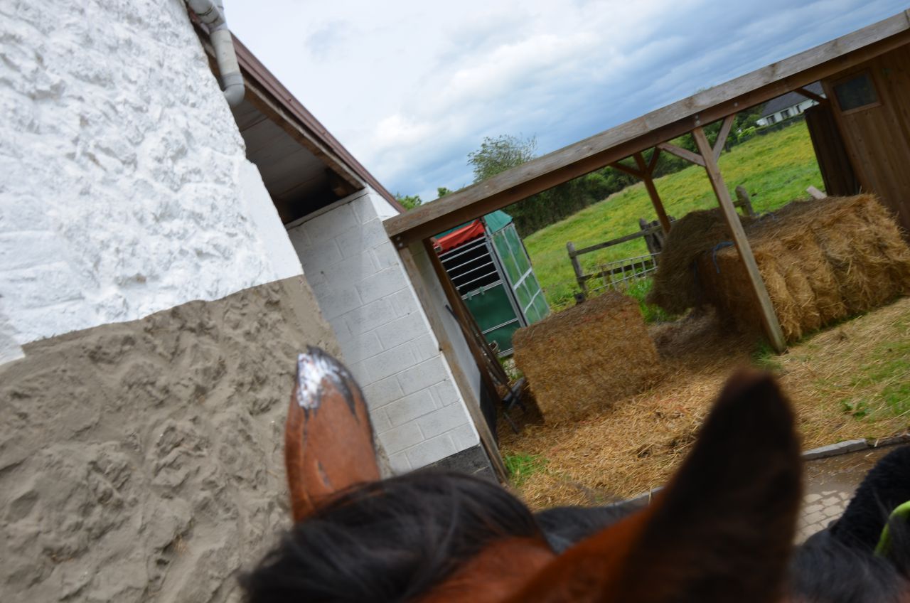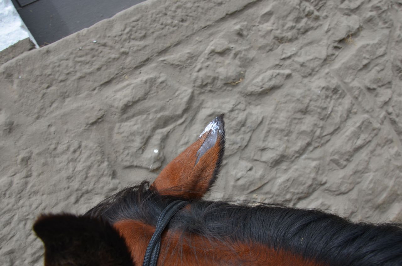 | Dire merci | Oui hein .. on s'ennuie jamais Au départ on pensait à un fil, mais quand on voit le surface plus large rapée à l'arrière, je pense plus à leur chamailleries et qu'un (je pense, le gris) aurait chopé l'oreille en bouche .. Nan ? Trop pratique en plus, avec le vent qu'on se paye les crins volent dedans, il en a partout ! Mais si je tresse, il est capable d'aller s'arracher les crins d'une manière ou l'autre .. déjà que l'isabelle lui retire tous licol, chasse mouches, fly mask .. je le vois bien tirer sur la tresse par principe |