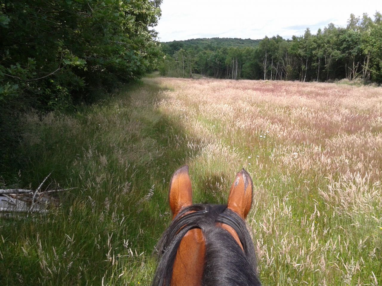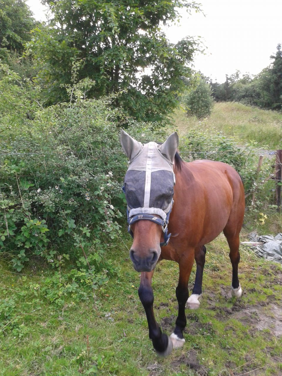 | Dire merci | De retour d'une balade de 1h20, avec de long galop, un Twist au top meme si en mode con par moment, ça, c'est a chaque fois qu'on sort moins, il fait semblant d'avoir peur J'avais mis mon appli sur mon gsm, on a fait 10 km, en 1h20 donc, en général le pas à 7km en moyenne, plus par moment, il avait la peche ! (bon l'appli pourtant fiable a du planter au départ, elle affiche ma vitesse max à 84 km/h, mouiiiii )C'était bien sympa ! A part que je me suis faites mangée par les taons ! ![]() Lui rien, merci l'émouchine .. mais moi .... Seule difficulté du parcours : un arbre tombé, 60-70 cm de haut .. j'aurais bien sauté, mais c'est en descente, ça glissait, et y avait des branches au dessus Suis descendue, et Twist est passé tranquillou en levant bien délicatement les 4 jambes , dans le calme ![]() J'ai quelques photos De l'herbe jusqu'a mes pieds, c'était trop tentant pour le Twist (notez l'oreille )![]() ![]() Et euh .... Oui, c'est un chemin .. et c'est par là qu'on va ! et c'est comme ça un moment en plus ....(Et là, tu remercies ton cheval tout terrain, qui te fait hyper confiance pour foncer dans les branchages sans voir ce qu'il y a derrière ! )Et moi, je me mange les toiles d'araignées ![]() ![]() La vue ! ![]() Et le retour de Buz ! ![]() |
