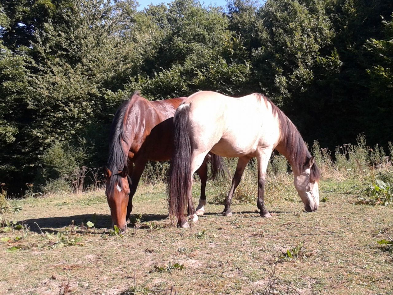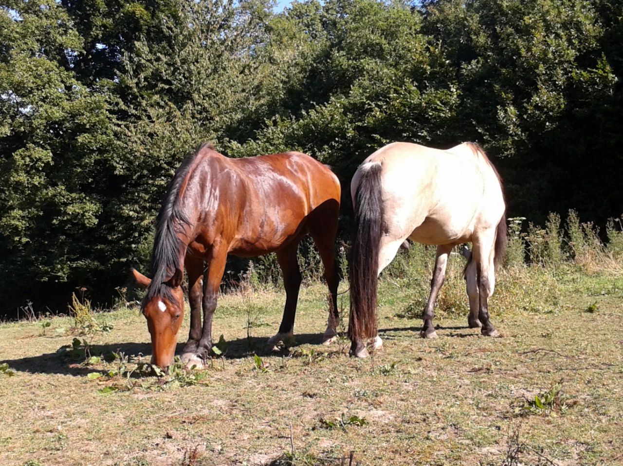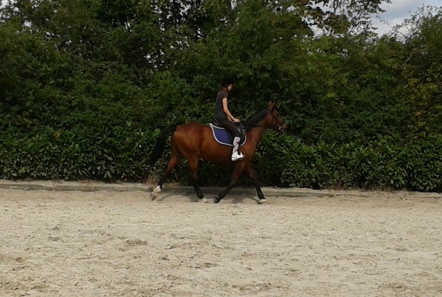 | Dire merci | Pas pu m'empécher de le monter aujourd'hui Je douillerai sans doute demain, mais ça en vallait la peine A chaud maintenant j'ai plus trop mal, c'est supportable dirons-nous .. Donc à la base, je comptais détendre au pas avec les autres en cours .. Sauf que visiblement, que du pas, ça le saoule, il en devenait chiant ...... En fin de leçon, je me dis que quitte à être chiant, dérouillons au trot Ben LA, divin le machin Rond, léger, cadencé, bien plaisant j'ai trotté 3 min, en variant les changements de mains et cercle, demandé le galop un cercle, au top ! On verra si je regretterai ce soir et demain |