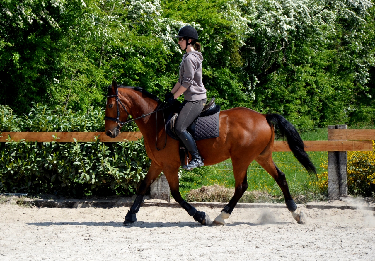 | Dire merci | Ce soir c'était balade de 2 h à 2, sous un vent de tempête où on s'entendait plus parler vive les bois pour être au calme ! trotting et galop, ça a eu l'air de lui plaire de changer d'air ! ![]() Super sage et à fond, juste une frayeur pour des canards, j'ai failli valser Avant de partir, on a teste .. des selles western sur lui ! Pour le coup , c'était un vrai quarter quoi ! C'est des vieux machins pas super confort, et qui lui allait pas du tout en plus, mais c'était marrant ... Congé demain, cours mardi ! Mais ça sera light, il arrive en bout de ferrage et commence à trébucher, la maréchal vient samedi Message édité le 12/05/14 à 09:51 |