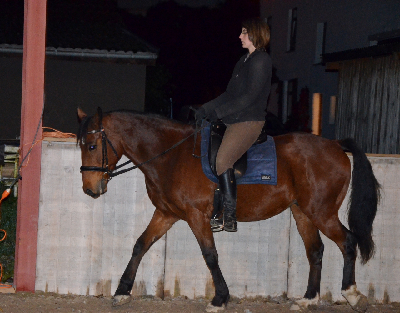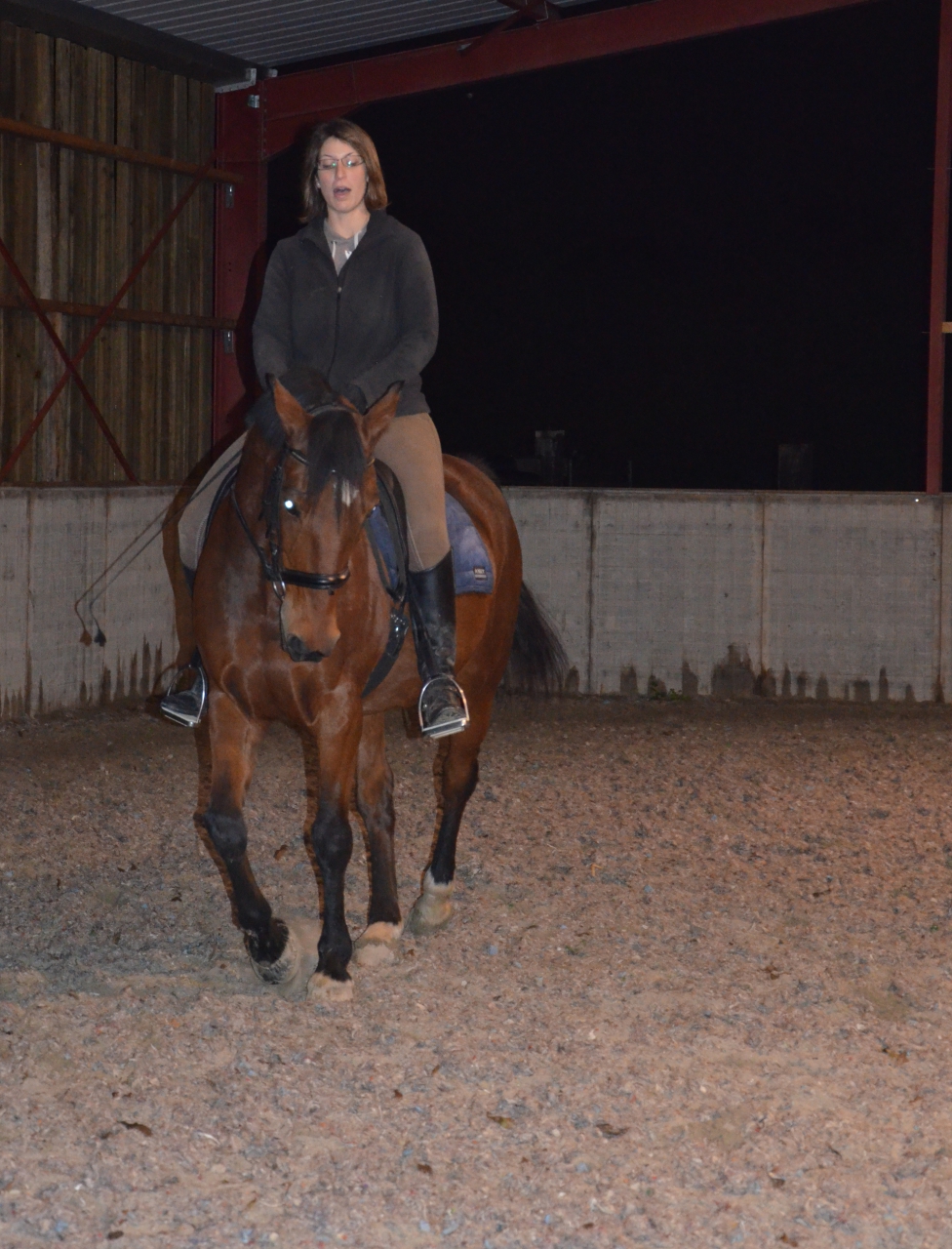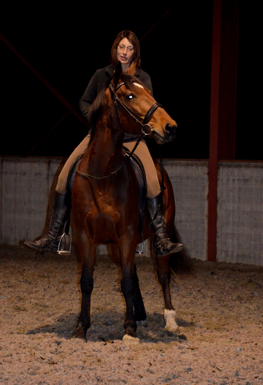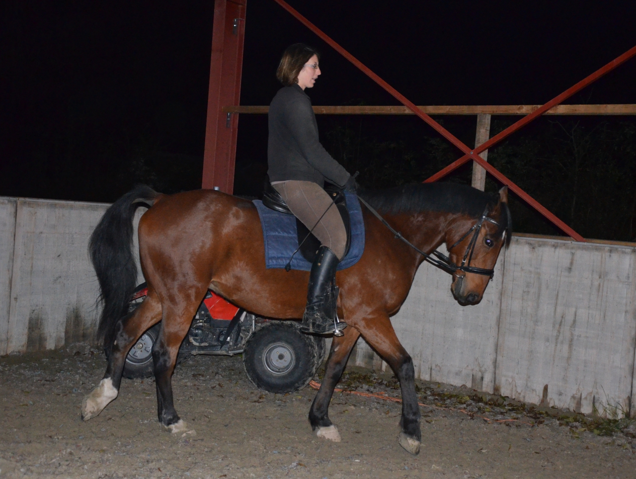 | Dire merci | Ce soir c'était donc cours avec PB ! .... Sauf que, orages du soir, bonsoir, panne de courant 5 min avant qu'il arrive ! J'ai su faire 30 min a la lumière du jour, après on voyait plus rien ... et la suivante a pas su avoir son heure du coup il reviendra sans doute debut novembre pour elle Moi, les 30 minutes ont été tip top Un pas avec un équilibre excellent, sur des EED , cessions sur des diagonales ou classiquement, pouwah ! Et un trot vachement bien aussi ! PB était très content et trouve qu'il y a eu une énoooorme évolution, il a du le dire 5 fois, ça fait bien plaisir ! |
