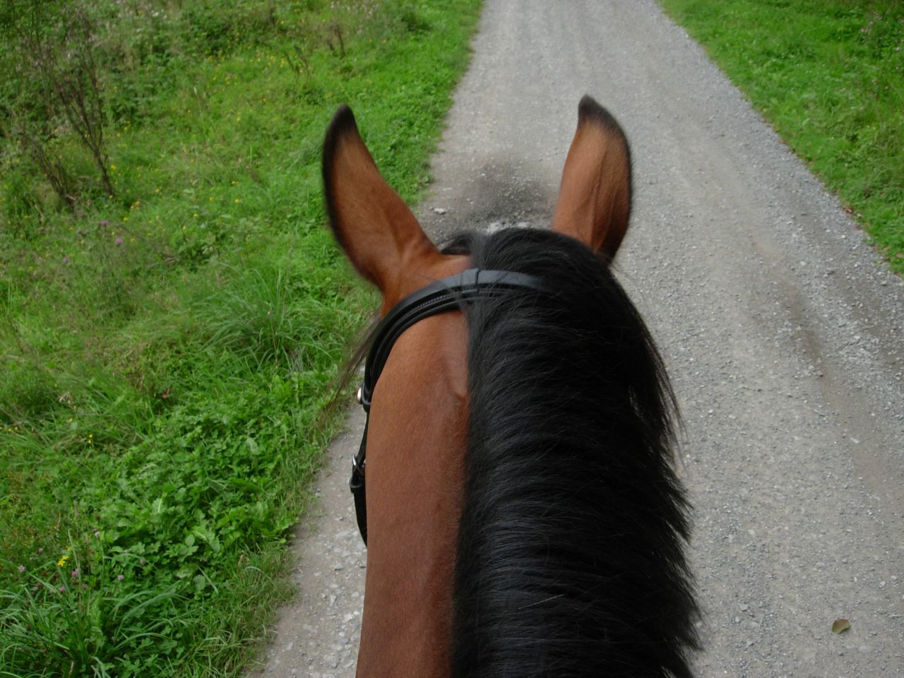 | Dire merci | Ah mince, je pensais qu'on changeait de page ! Bon, je disais donc .. Aujourd'hui, on avait décidé de faire une petite balade avec Clo.thilde et Iluso, et au final on a fait un tour de 1h30-45, pas trop regarder l'heure .. On a fait bien tranquilou au pas a discuter en gros .. Puis il nous vient la bonne idée des allures ( , enfin "mon" idée en plus )Pour le trot, un Twist sympa, mais que je sentais un peu "titiller" en dessous, mais là, il est resté sage .. Faut dire que je le trouvais mal luné aujourd'hui, comme quoi y a des jours On repasse au pas pour traverser une route , et là on se dit qu'on reprendrait bien le trot pour un galop ensuite .. Sauf que comme je l'avais senti, Pignouf prend le galop direct ![]() Bref, Ilou réagit bien, ouf, Je fais repasser Twist au trot, puis on prend le galop .. Et là .. Crabe sauteur Power ! ![]() Il m'a fait plusieurs coup de dos/croupade, y a pas de nom déterminé c'est original , les 2 premiers "petit" et un plus sévère qui a faillit m'envoyer au tas ![]() Puis vas-y que je galoppe en crabe, vers un banc en bois, ne daignant pas bouger de la trajectoire (j'avoue, sur le coup, je me suis dit qu'il allait s'essayer au cross, sauf que ça serait certainement pas passé ), mais il a quand meme dévié en refaisant un coup de dosPuis y avait plus personne aux commandes .. j'avais laissé le mors en resine, je pense que je vais penser a remettre le simple pour les prochaines sorties, sinon, va y avoir des soucis .. Bref, au final il a dévié, ouf Et du coup, j'ai évité de le faire marché dans les coté d'herbe, puisque pour lui ça signifie "faire le con et partir comme un pété" aujourd'hui Et il essayait de s'y fouttre de lui meme le bougre ![]() Message édité le 22/08/11 à 18:12 |
