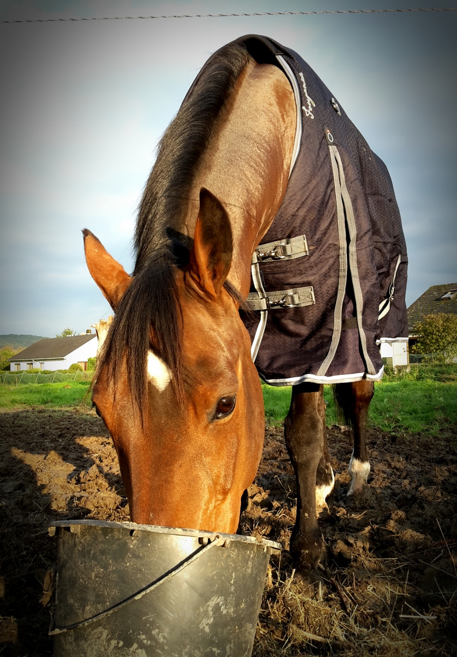 | Dire merci | Moi aussi elle va au top: elle est toute ronde, toute bien au pré. Mais alors... deja elle me voit au pré, elle me regarde genre "nonnnnnnnnnnnn" et elle s'en va un peu plus loin... pour finalement se laisser attrapper sans broncher. Et au boulot, poualala. Elle chipotte tout, conteste, est sur l'oeil, bug pour un rien... Grumf! |