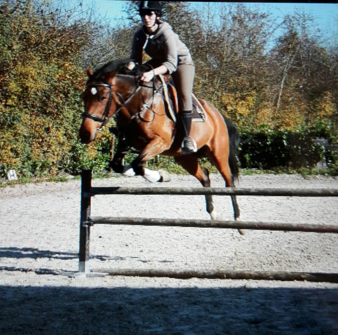 | Dire merci | Et bien et bien .. nous avons sauté hier ! Et on a battu notre propre record ! Moi qui devenait blanche avec 80 cm et lui qui les passait pas facilement .. bah on a fini sur un vertical 90 voir 95 j'ai pas mesuré J'ai pas la photo elles sont prises trop tôt Mais j'ai un cran plus bas quoi .. il a pas hésité une seconde même s'il zieutait .. quel cheval Vendredi en dressage il était pas mal aussi ! Malgré le défilé de centaine de gosses déguisés et odeur de pétard qui sont passées près de la piste avec lampe de poches et cris .. pas fier l'animal |