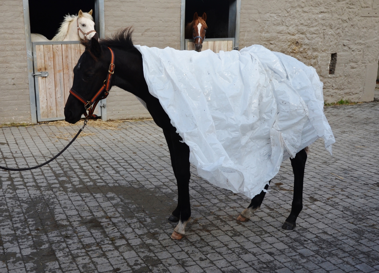 ), drapeaux qui vole (y avait bcp de vents), chevaux de trait, anes, porte de grande en métal qui claque, moutons, au milieu de travaux avec donc énormément de matos, tuyaux rouge sur de gros rouleaux plus hauts que moi, ....