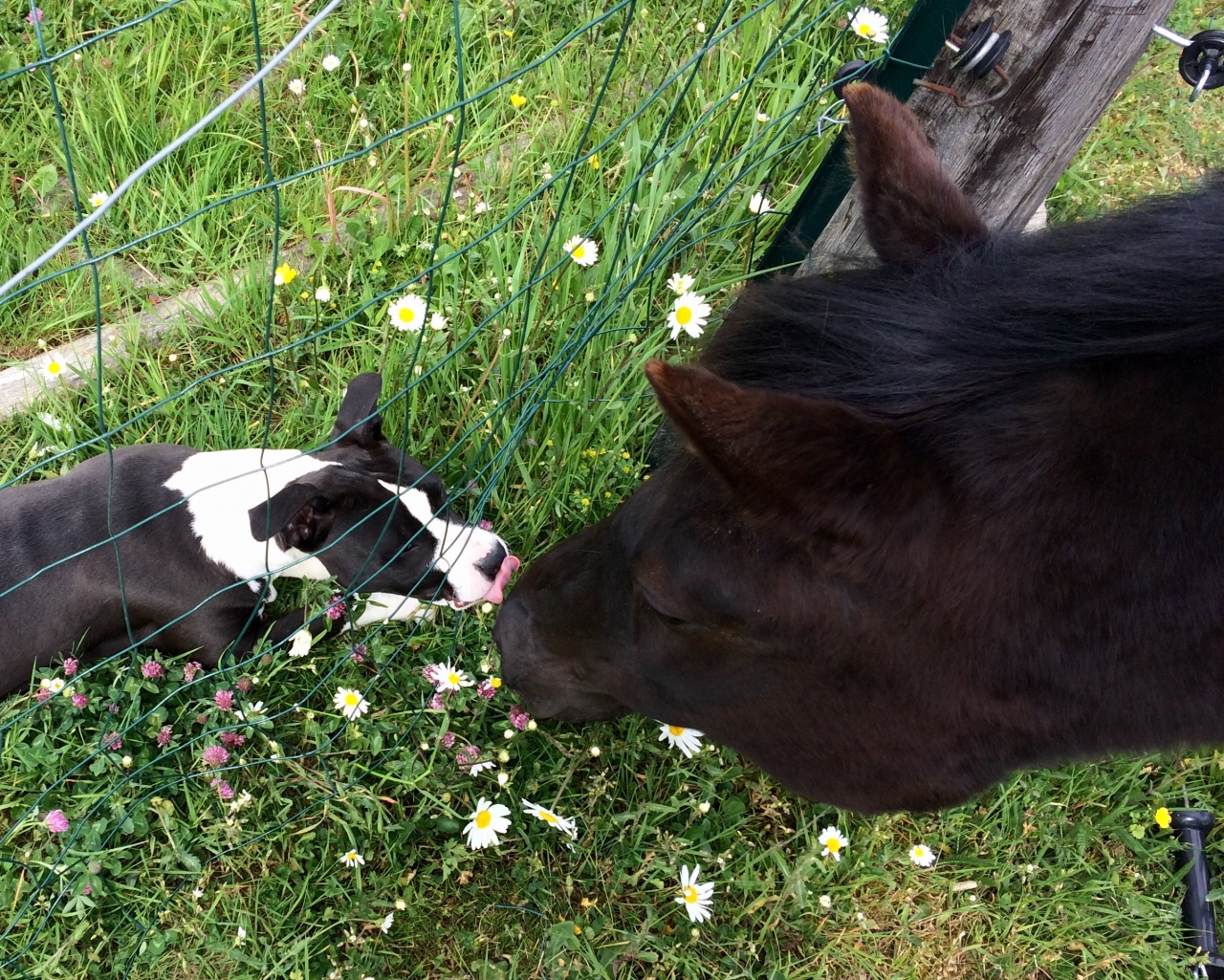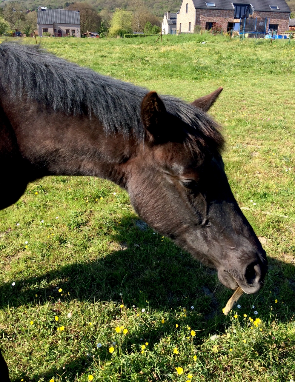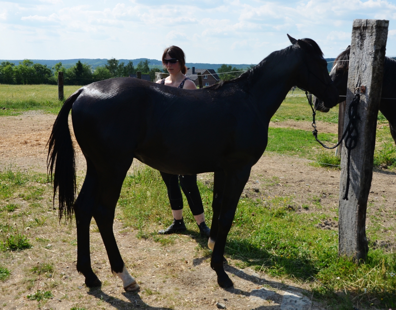| Dire merci | Pincez moi, ce poulain est tellement à part Visite tout à l'heure, je vais m'assoir dans l'abris lire un truc, il vient au dessus de moi, sendort .. 1m plus tard, je le vois rassembler des jambes, j'ai eu le temps de filmer il vient se coucher à côté mais ça dure à peine 5 min il se relève en vitesse sans que je comprenne, mais visiblement un truc le grattait très fort Et 3 min plus tard, il revient se coucher, encore plus près de moi .... quelle perle ! 2e Et le traumatisme du jour ![]() ![]() ![]() Et pour finir, petit instant de balade avec Twist, 1h30 de balade au top, hyper motivé malgré la chaleur, au licol, aux 3 allures, un régal Message édité le 25/05/17 à 20:37 |