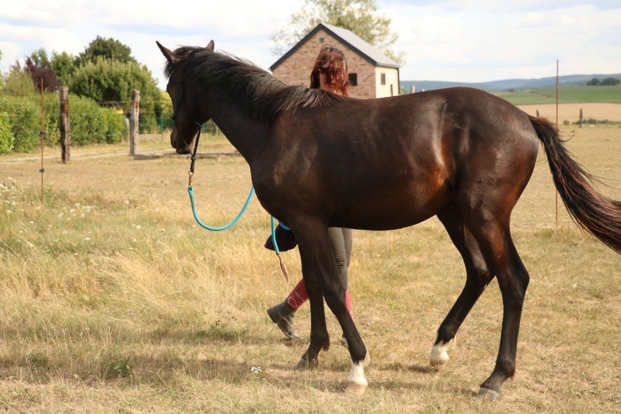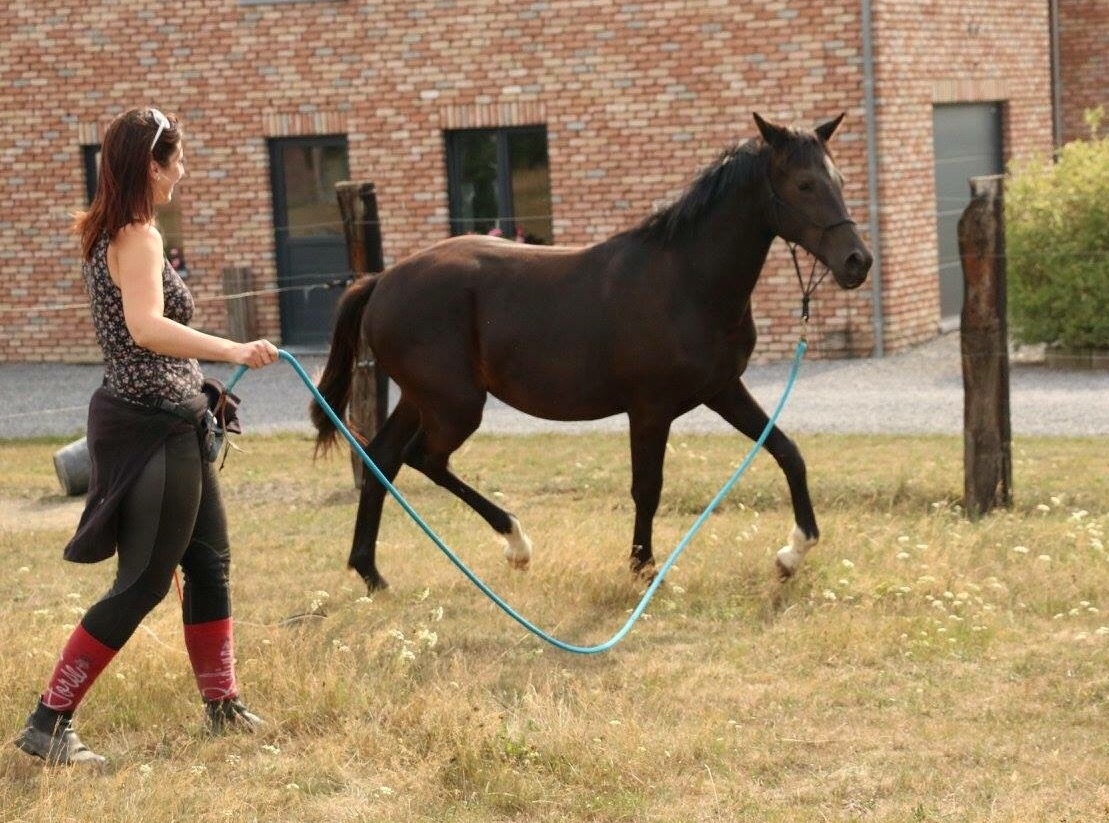 | Dire merci | toto00789 merci ! Oui et la il avait genre 6 cm de différence entre lavant et l'arrière, qu'est-ce que ça va donner à 3 ans Donc aujourd'hui séance improvisée comme j'avais qlq un avec moi On va le chercher, il vient nous voir ![]() Je vais chercher le licol, il se dirige seul vers la sortie, ravi Il pose un peu ![]() ![]() ![]() Puis on commence par qlq mobilisations de hanches sans toucher , hyper acquis .. ![]() Des demandes d'immobilité avec moi qui tourne .. dur parce qu'il pense que je vais lui demander de bouger les hanches mais il pige de mieux en mieux le code ! ![]() Révision de jambette, bouffé par les taons .. j'ai zappé le spray avant .. il m'a même proposé de lui meme de le faire en marchant quoi ! y avait de l'idée ! ![]() ![]() Puis on passe à la révision des codes en longe, hyper court, juste de quoi valider les transitions pas trot arrêt , hyper top !! ![]() ![]() ![]() Un arrêt depuis le trot, instantané, attentif, parfait ! ![]() ![]() Je lâche le fauve ! ![]() ![]() ![]() ![]() Je fais un test d'arrêt en liberté : pil poil quoi j'étais sur le cul ! Rappel ? Je me baisse et il vient .. ![]() ![]() ![]() ![]() |
