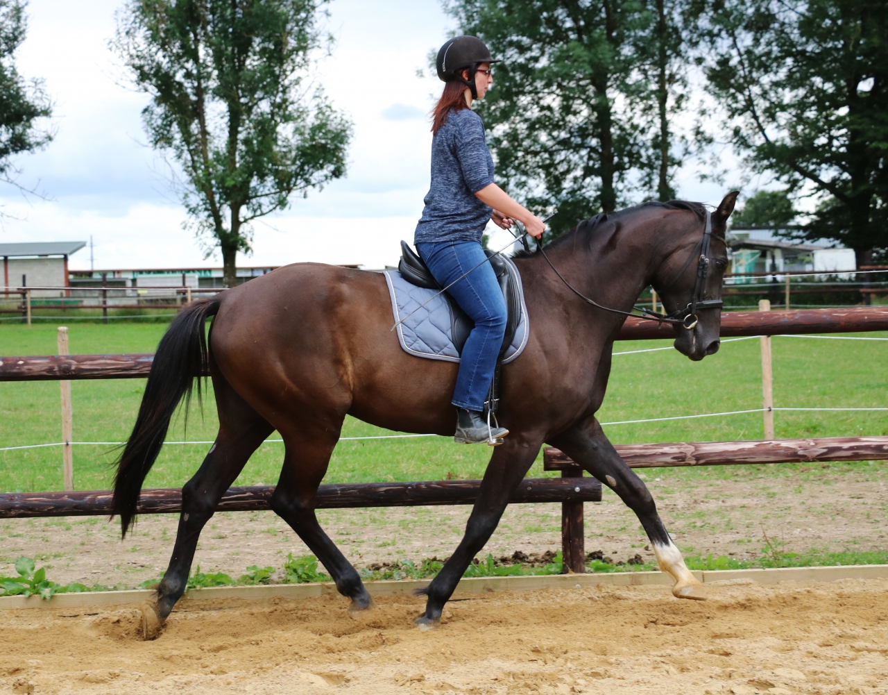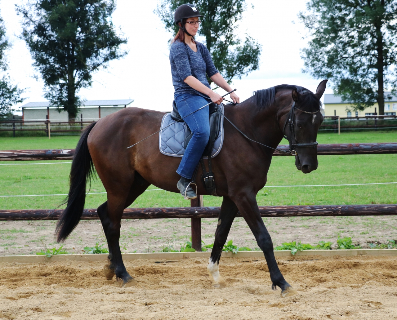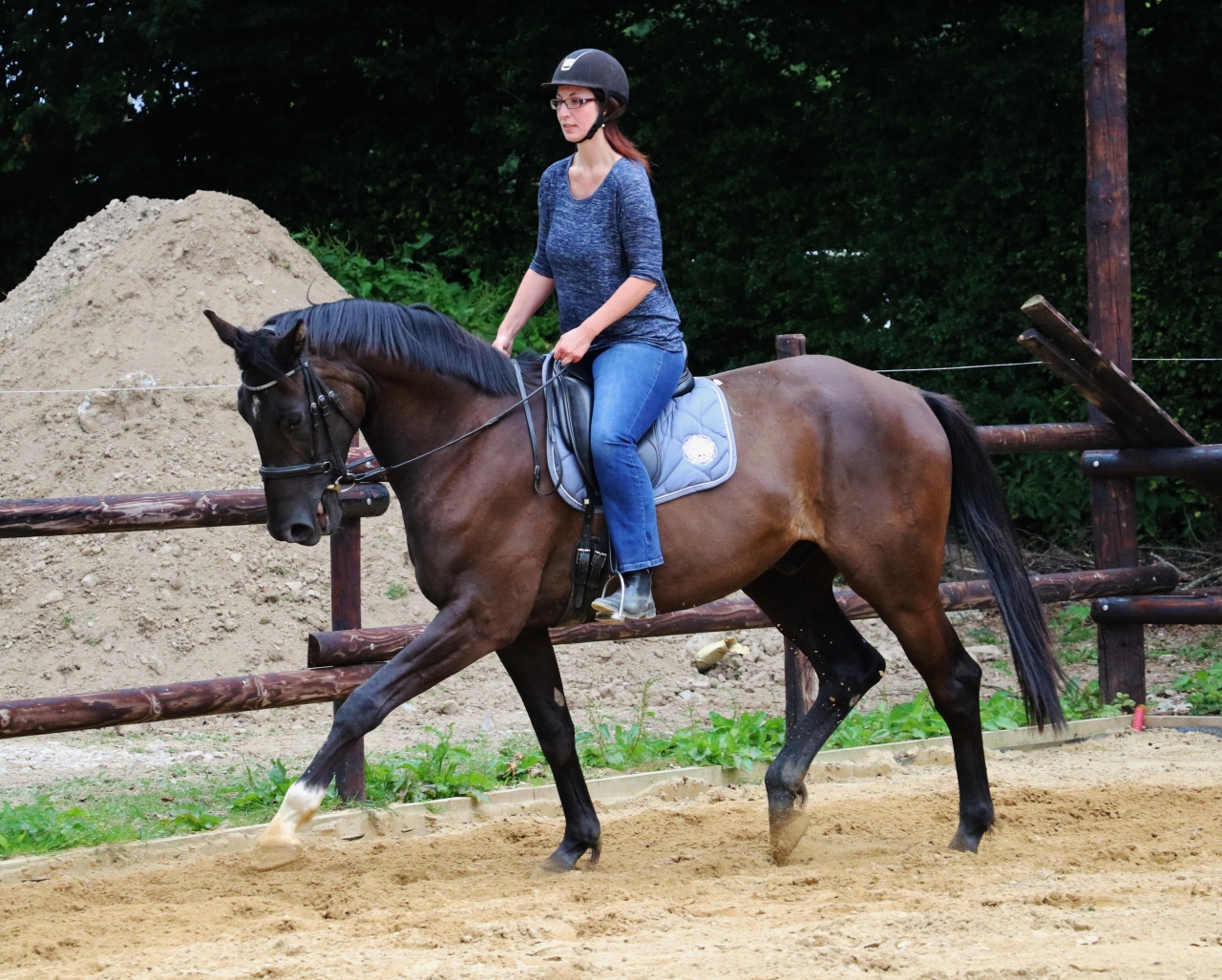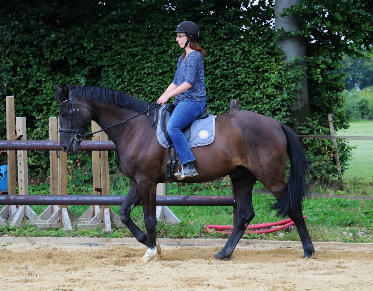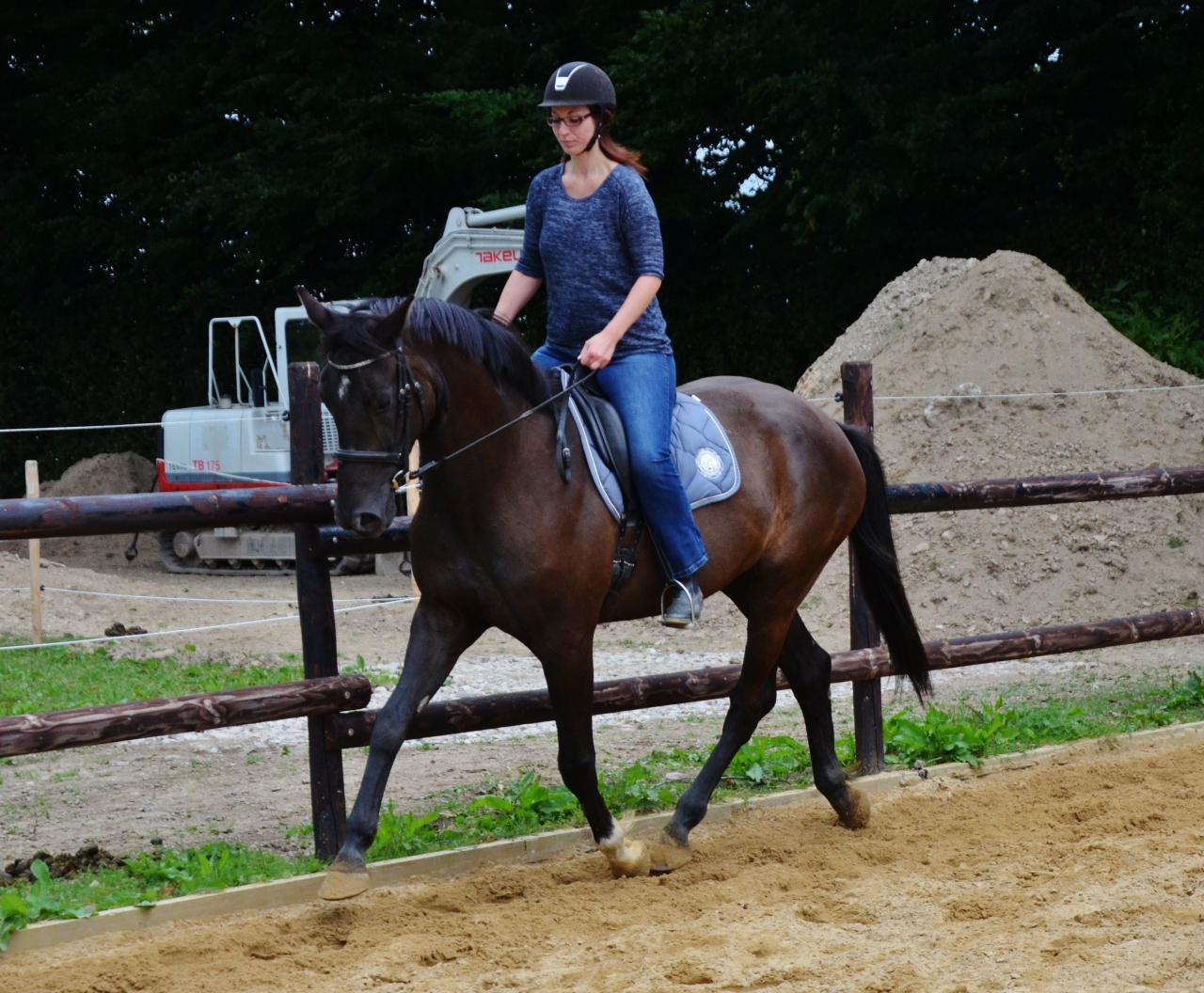 | Dire merci | Et donc le 5 ans ! Alors lui, il est hyper vert .. il a été débourré a 3 ans, puis arreté suite a une bactérie dans le pied, chirurgie, platre longue durée .. sa proprio cherche un prof, fait un peu seule du coup, elle est "verte" aussi comme elle dit pour ce genre de cheval, elle a été cassée par un prof, elle manque d'assurance dans son travail du coup, se débrouille bien mais je vois un cheval en sous impulsion, sur les épaules par moment, sans contact, qui marche pas droit, pas dans les jambes, qui a un sale tic a bouger la tete, meme rene longue limite irrégulier dans son allure, ce qui déstabilise fort dans le trot niveau équilibre de la cavalièreje la conseille un peu, on voit deja une différence assez vite, le cheval est hyyyyyyper sympa ! elle me le propose très vite ![]() bah purée, j'ai jamais été aussi sereine de monter sur un cheval que je connais pas ! aucune appréhension, je suis "bien" sur lui direct, je me pose, le regarde, j'ai la sensation de voir Dream dans 2 ans, petite émotion Dream sera pas vraiment pareil, il aura plus de sang, plus "félin" si je peux l'exprimer ainsi, mais le mental, un peu de modèle, son coté bisounours, c'est LE MEME ! direct, je sens qu'il est pas hyper sensible au bassin , mais il a vite cerner ! j'ai mis en avant de suite, il est pas spécialement ravi, il a aps l'habitude d'etre dans les jambes ni poussé, mais il s'y met, grosse différence a la fin ! au pas en avant, il finit par trotter, je pénalise pas, il cherche ! idem au trot, il galoppe presque directement, pas habitué a etre dans l'impulsion, je riais parce que sa proprio me dit "Ah ben moi j'aç tjs bcp bcp de mal a le garder au galop!" Moi du coup il redescendait plus au trot mais super sympa, il cherchait vraiment ce qui lui arrivait et ce qu'il devait faire !Tu sens les postérieurs a la traine de temps en temps, un dos faiblard, ca manque d'uniformisation entre tous les morceaux, mais j'allais pas tout réglé en 30 min, c'était déjà un vrai pied sur la fin ! Mais les sensations Non de Dieu !!!!! indescriptible, et il est pas au 1/4 de ce qu'il pourrait donner !!Dommage que j'habite si loin C'est physique, mais QUEL PIEEEEEED !!! Le lendemain, elle m'envoit un message, totalement ravie, il est différent, tient son galop, elle l'avait apparemment pas eu comme ça Pour le coup, j'étais plutot contente ! place au photos ! |
