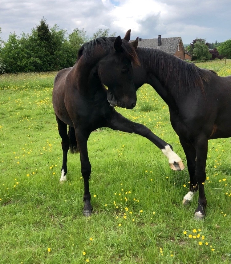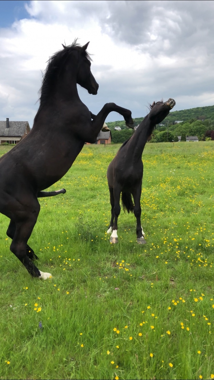 | Dire merci | amoureusement au départ je pensais pas qu’il aurait un petit « plus » dans les allures, mais quand je le voyais encore hier en longe, mama !! Il a compris comment trotter, cadence, et dans un équilibre naturel dingue pour un 2 ans tout en croissance Je bave .. lonestarranchcowboy merciiii pour eux ! Malheureusement le jeune retourne vers des quartiers aujourd’hui déjà tessa hey ! Tu vas bien ? Tu viens dans le namurois juger prochainement ? Ouiiii j’y crois pas moi même de ce qu’il va devenir .. il fait baver pas mal de gens mais je vends pas ! L’ironie c’est que j’ai réservé ce poulain à 1 mois (y a 2 ans jour pour jour ! ) JUSTE pour le caractère que sa mère produit, j’ai pas regardé bouger, ni le modèle, parce que poulain je répète rien moi ..Belle ironie, il suit la ligne de son père Mon dieu qu’on va se plaire là dessus ! |