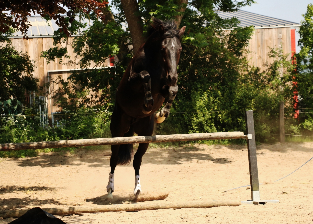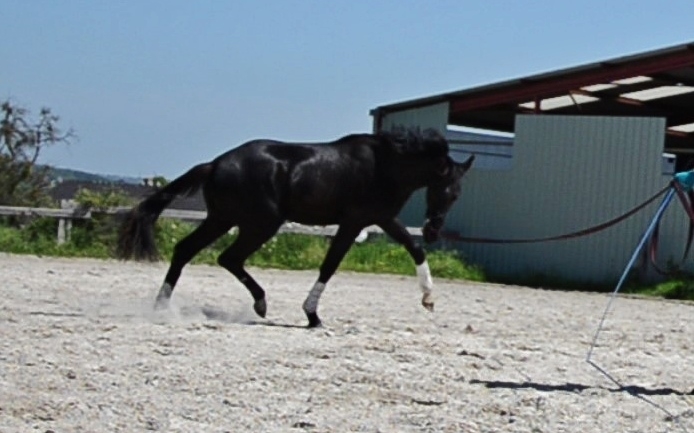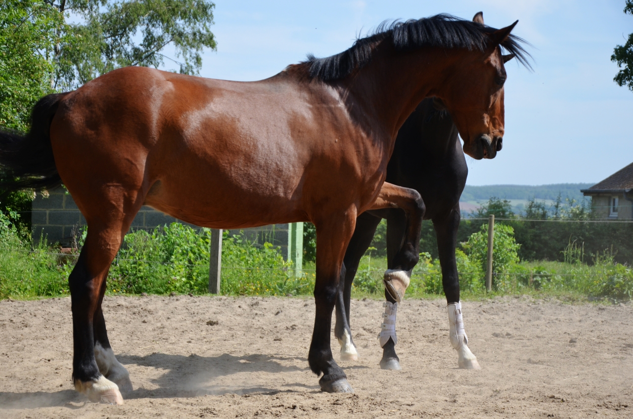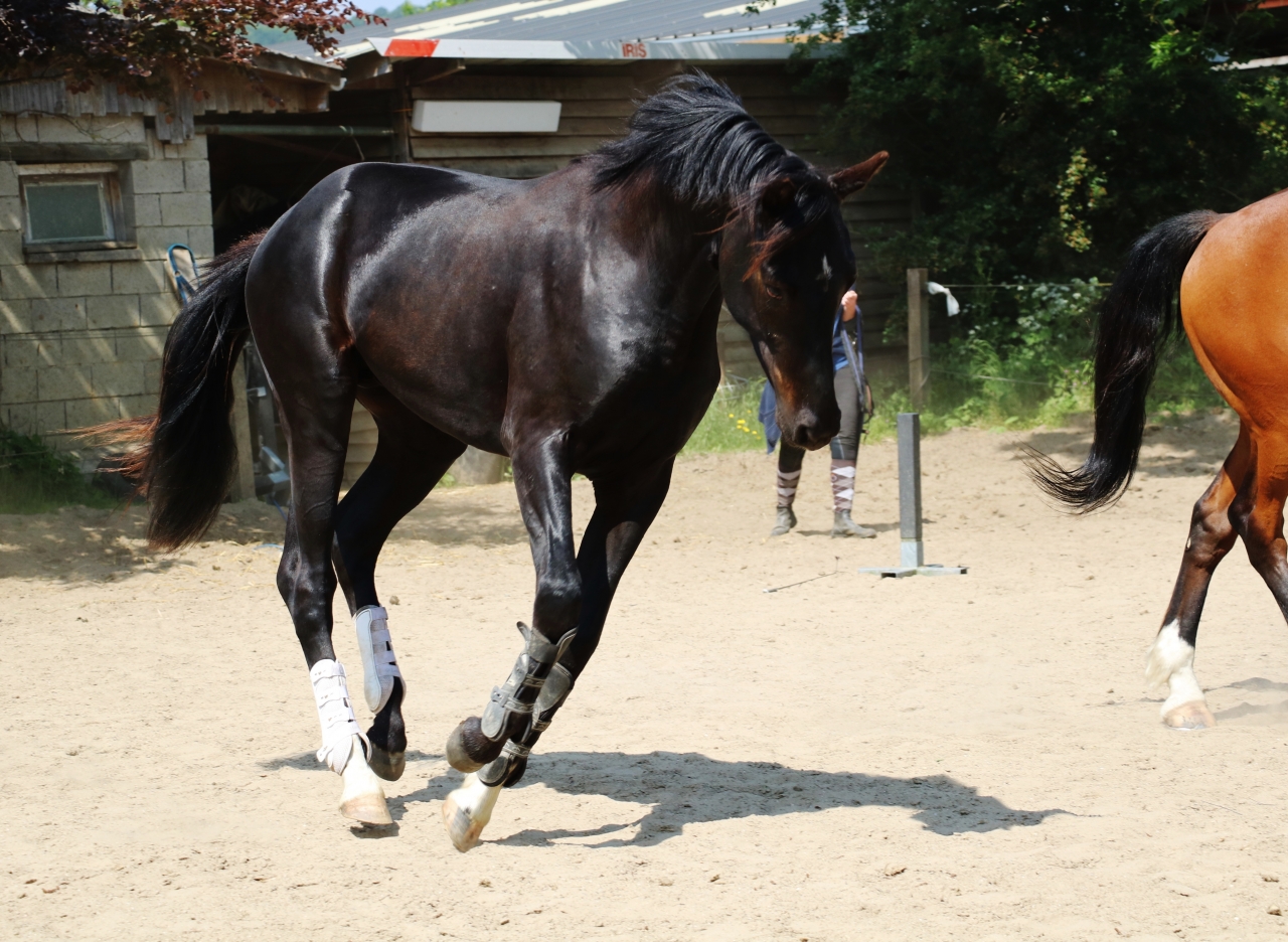 | Dire merci | C'est vrai qu'il est superbe !!! Très charismatique en plus d'avoir tout ce qu'il faut dans les allures et le coup de saut Par contre, si je puis me permettre, je vois pas l'intérêt de bandes de travail sur un 2 ans ![]() |