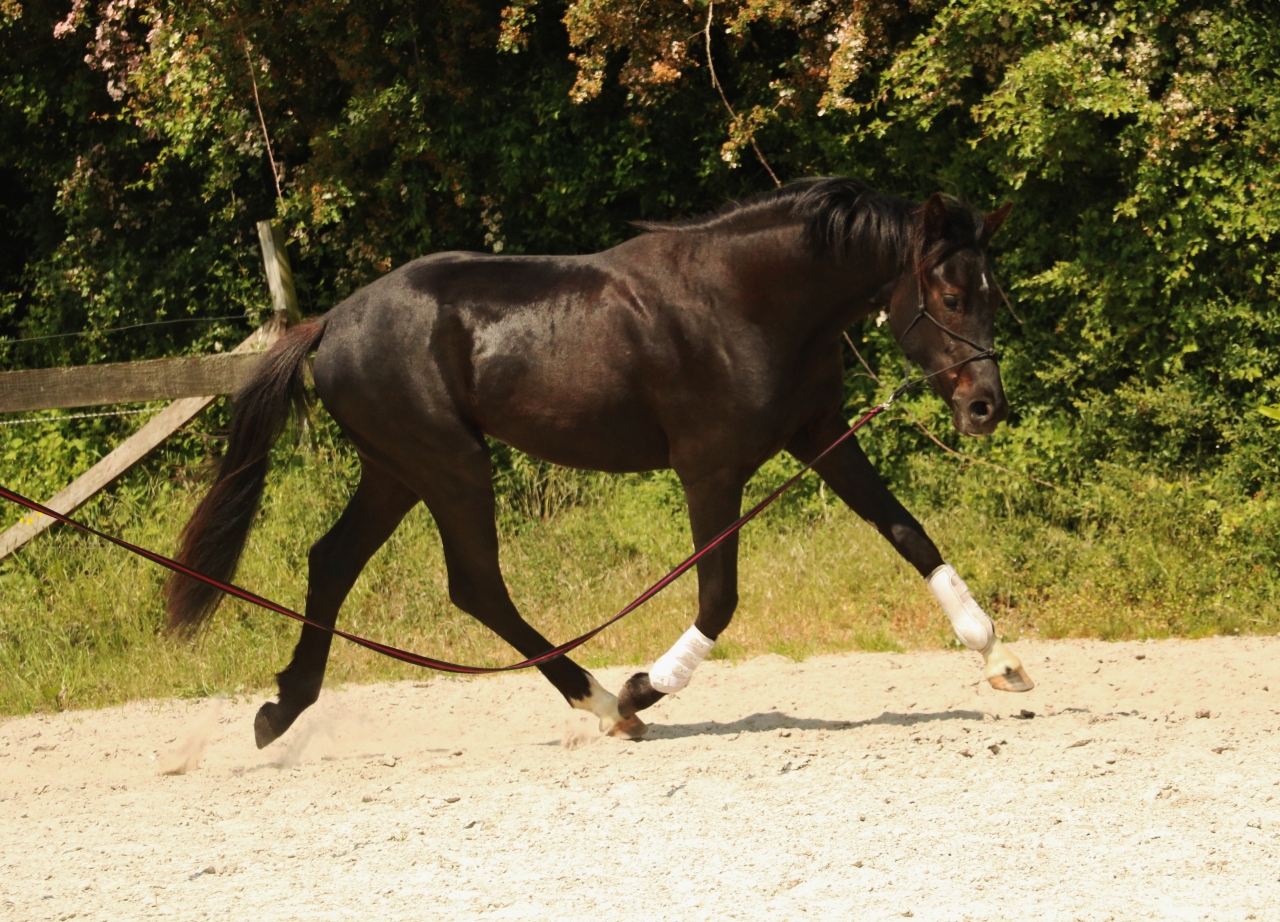 On joue avec les transitions dans l’allure avec des postérieurs, et j’essaye de lui faire piger de se caler sur mon bassin.