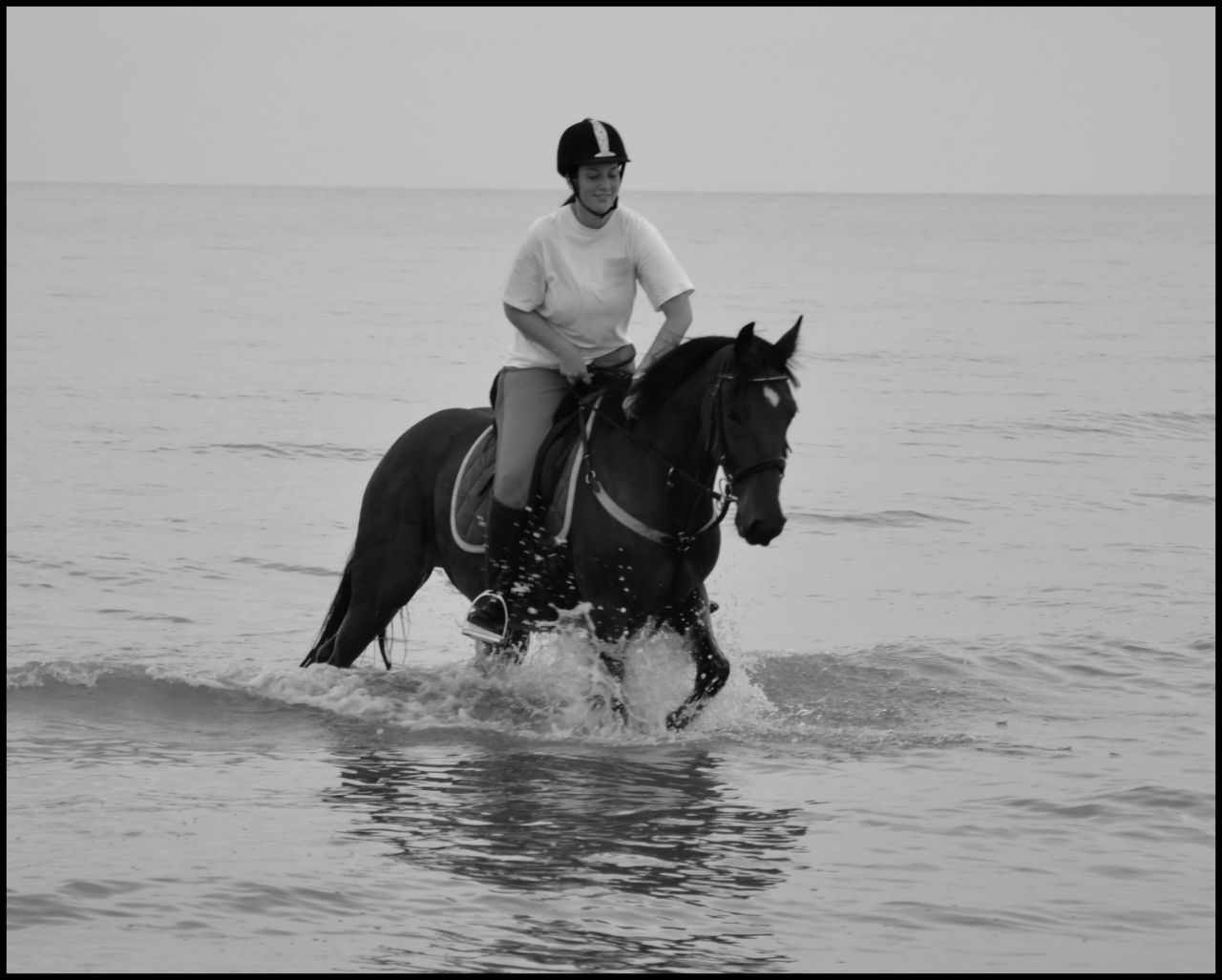 | Dire merci | Donc, un Twister assez éveillé à la préparation, mais plutot sympa, il a deja été pire en box a la maison, donc j'etais contente ! Nous voilà donc parti vers la plage ! ![]() 15 bonnes minutes dans les dunes avant d'atteindre la plage tout d'abord.. Une seule photo lors de la 1ère balade, je préfèrais avoir mes 2 mains dispo pour "voir" .. et j'ai bien fais Donc, dans les dunes ! Il s'est très bien comporté dans les dunes, ça avancait devant donc il ralait pas ! ![]() Un "couac" sur ces chemins .. Le sable était visiblement tentant pour les chevaux, un jeune a décidé de se coucher J'ai juste entendu un "Hé!" , le temps de me retourner, il était au sol Pas de mal pour la cavalière, mais Morenito nous a dépassé, Twist en a eu peur j'ai pas su l'attraper, et les 2 devant moi non plus, là le stress, il se barre ! Mais non, il a stoppé, fais un droite-gauche genre "j'y vais j'y vais pas ?" Et on a su le récupérer .. Ouf ! |