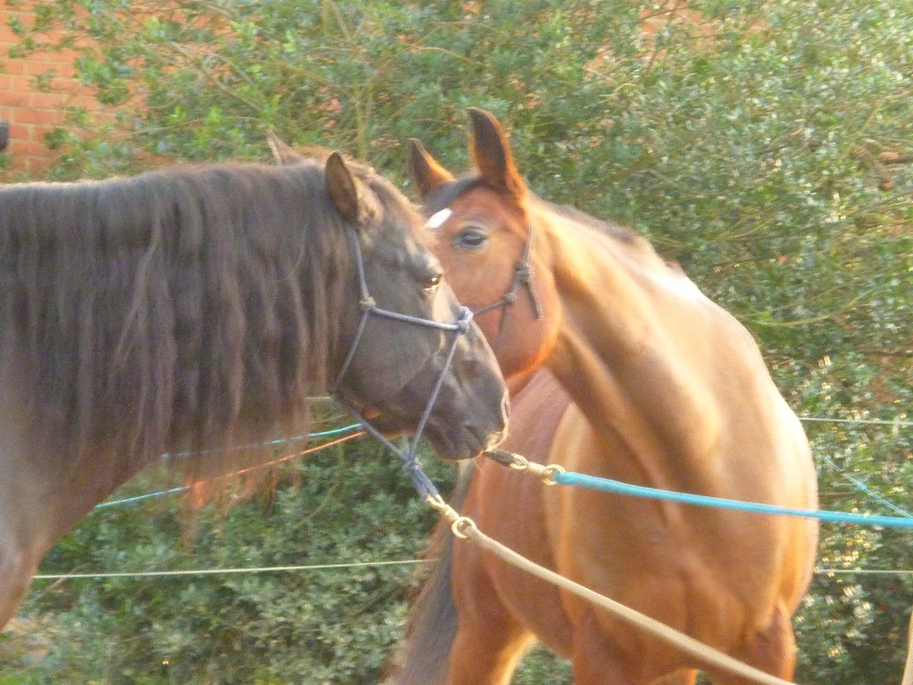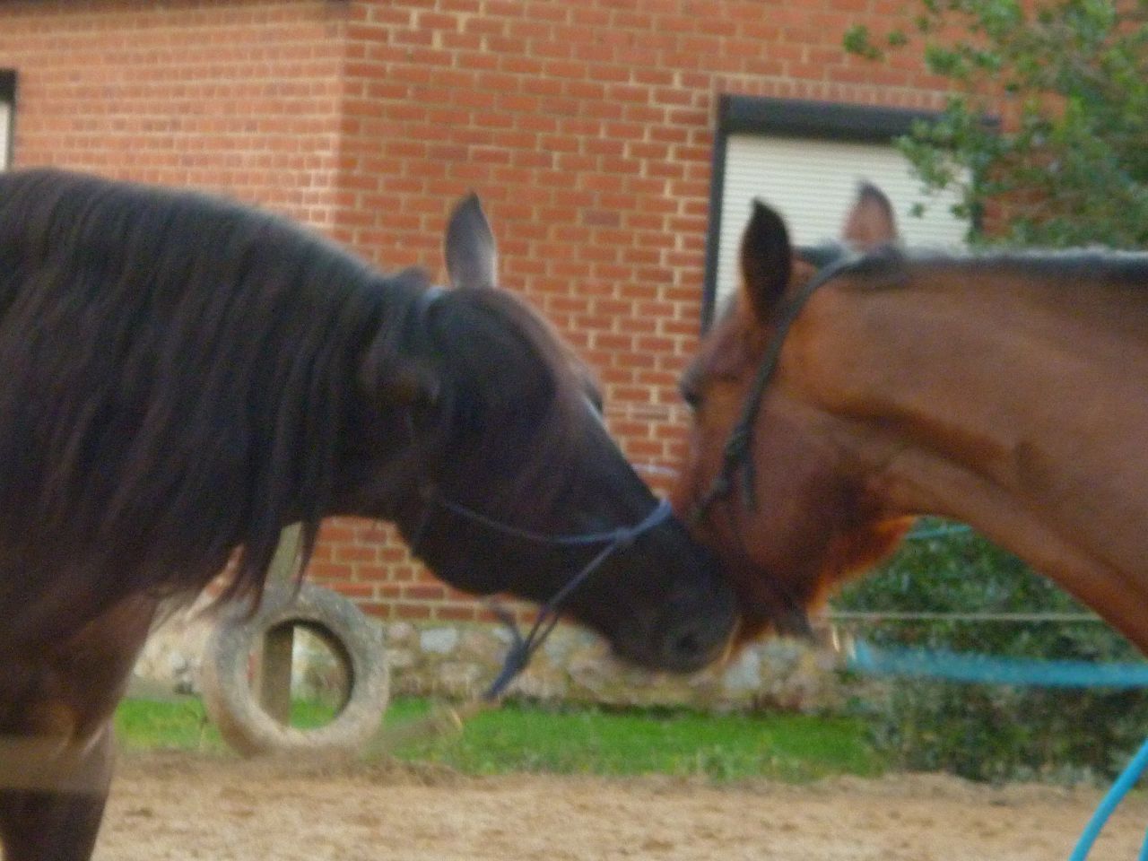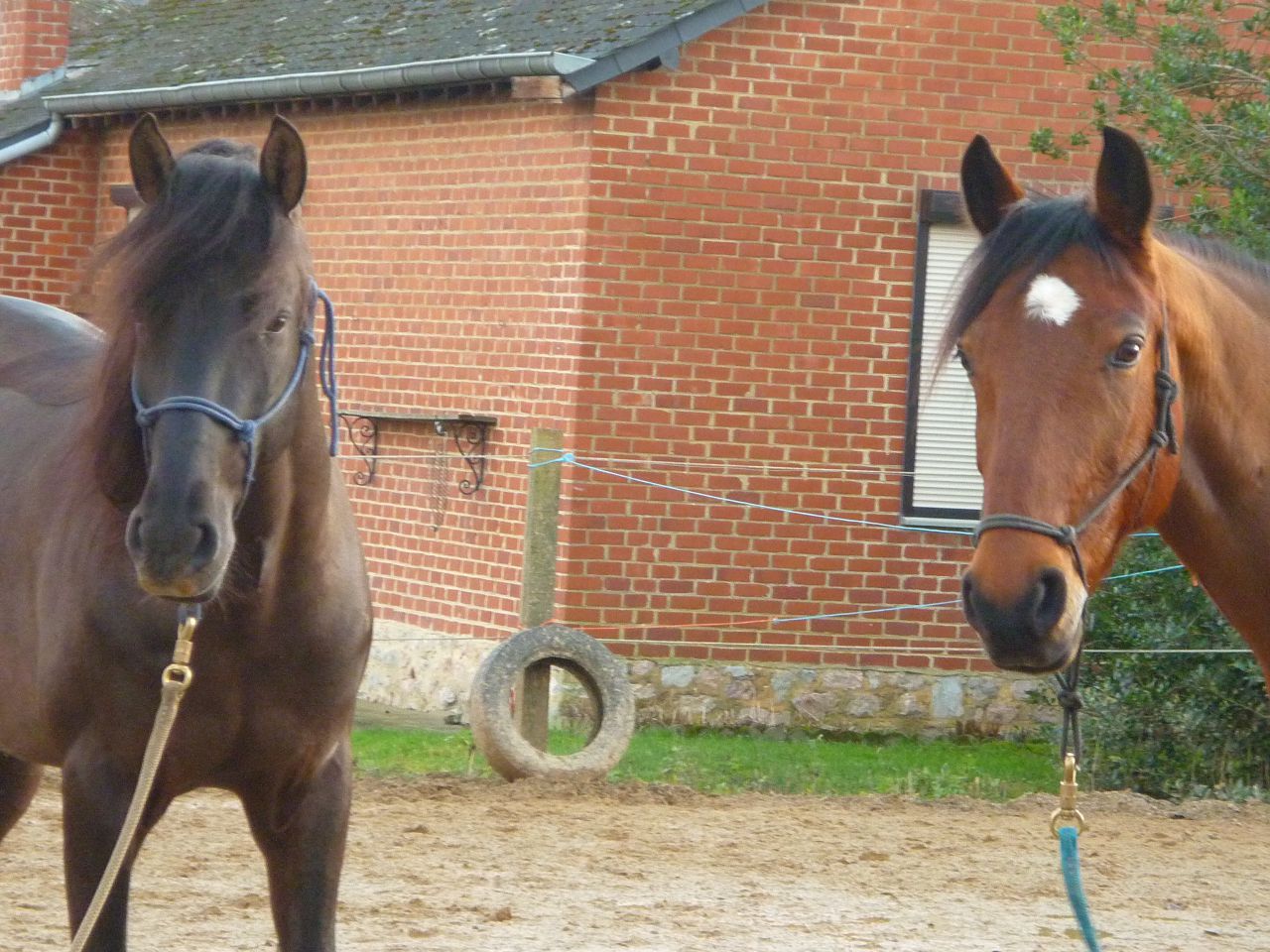 | Dire merci | Rencontre pour de "vrai" d'Iluso et Twister ! En longe ici, car petit milieu, on préfèrerait la prairie pour les lacher ensemble et voir .. Bon, le dominé c'est le mien qui a un peu peur en fait, mais Iluso n'est pas spécialement vilain du tout, a part mordiller, il lève pas un pied rien, mais Twist est méfiant Enfin ça c'est bien passé, je détaillerai par après ![]() Desolée, photos floues, petite soucis "Non mais qu'est-ce qu'elles nous veulent encore ?..." ![]() ![]() ![]() |
